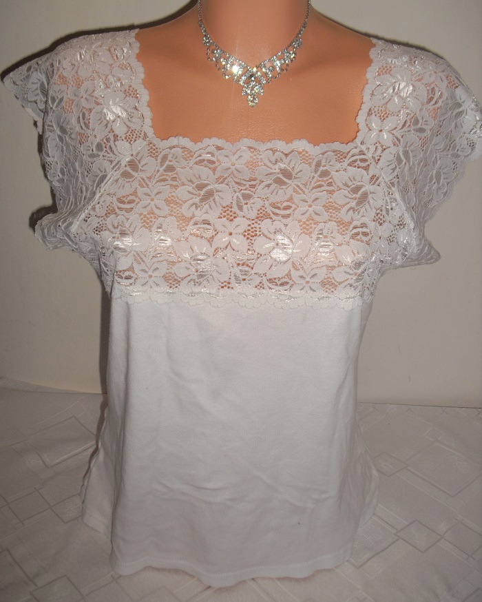 predam nadherny biely krem topik, bavlneny, prijemny na telo, elegantny, zdobeny krajkami, znackovy. velkost uvedena xl, ale ide aj na l. sirka 47 cm x 2 az 55 cm x 2, dlzka 58 cm.
