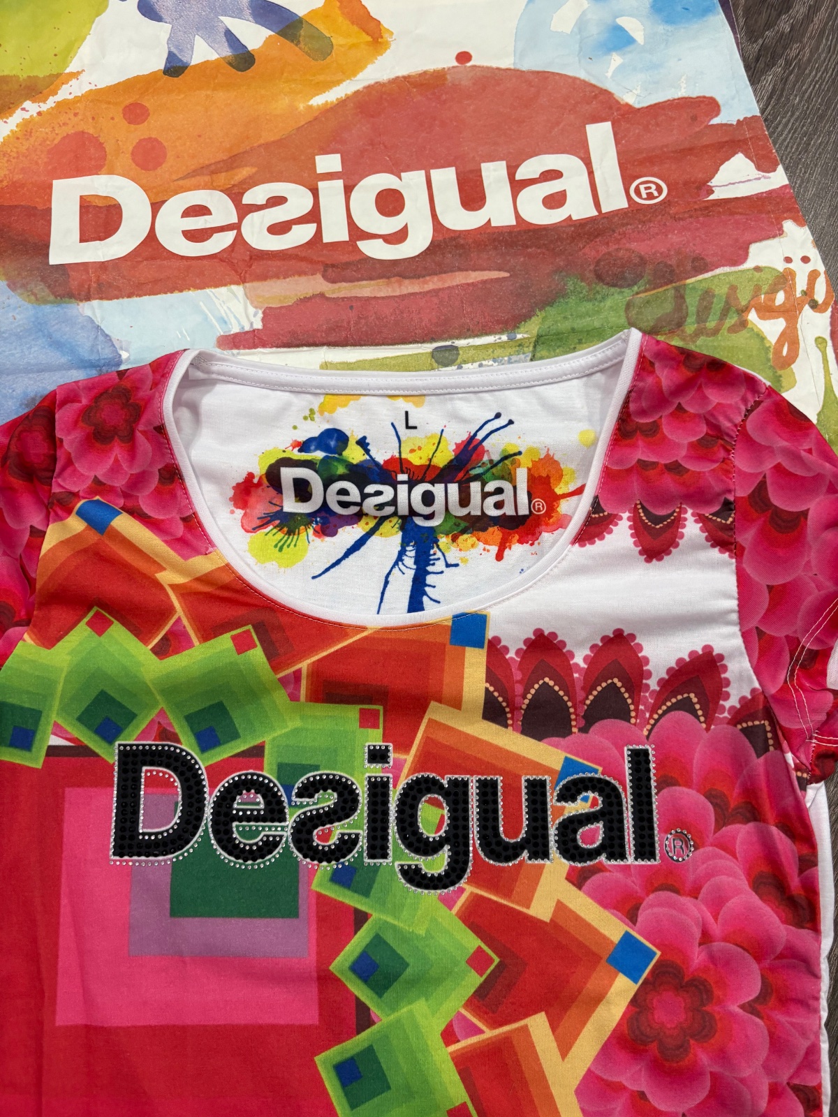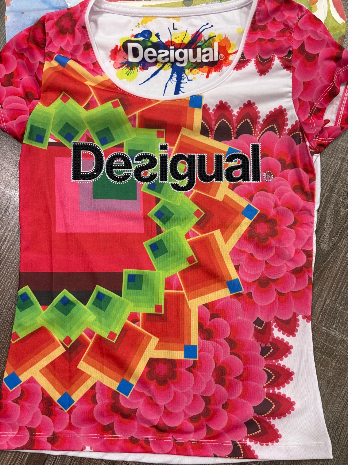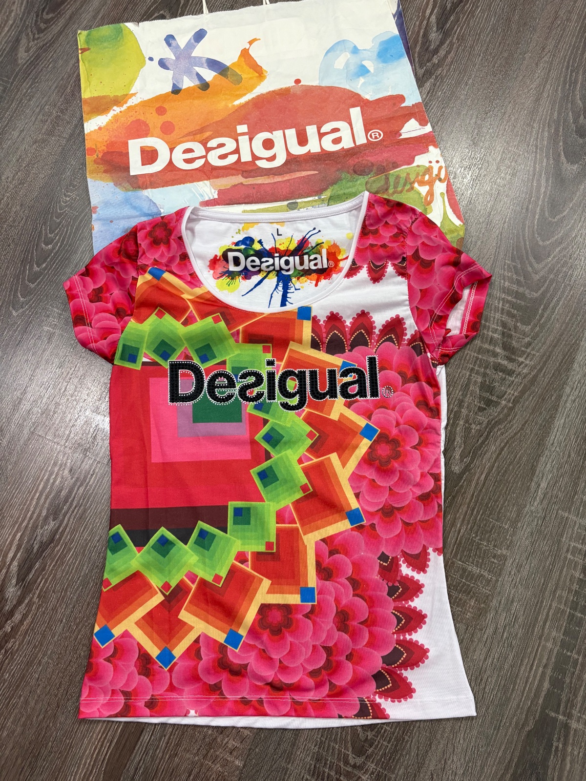 014.Desigual damske tričko vo velkosti L,dlzka je 63cm a sirka v podpazusi je od 43x2cm do 49x2cm