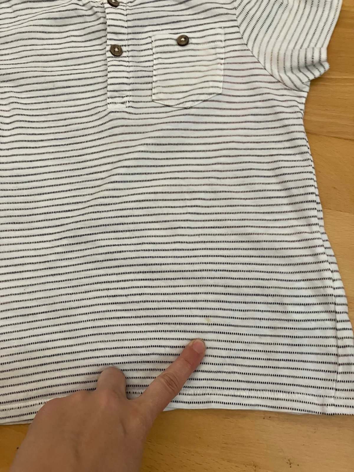 nosené pri gombíkoch drobná dierka, asi prasknutá nitka, nezašívala som, aby to nebolo výrazne vidieť šírka 2x 36 cm dĺžka 47 cm prosím, čítajte podmienky predaja