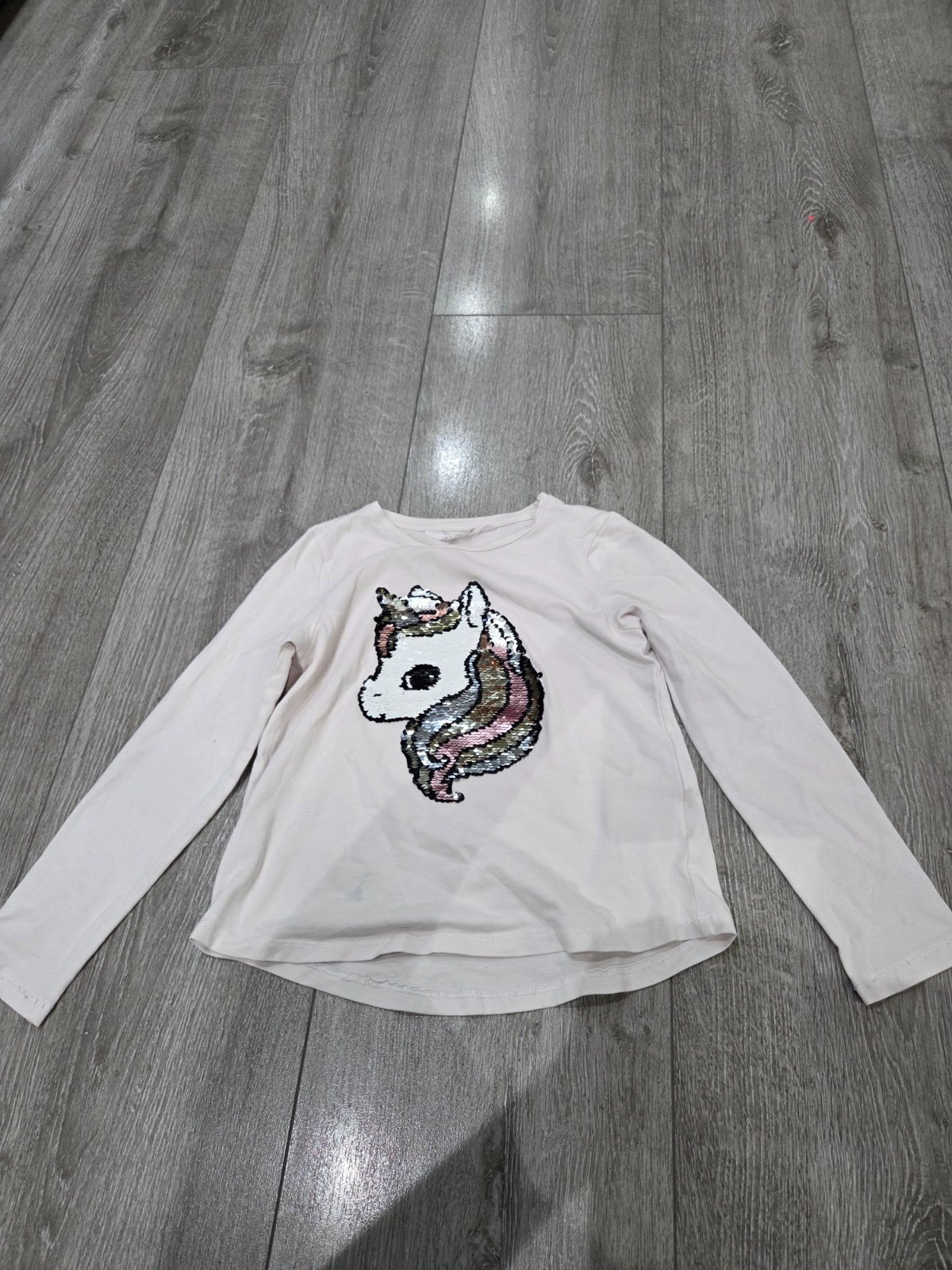 Na predaj málo nosené tričko s dlhým rukávom. Farba tmavobéžová. Značka H&M. Veľkosť 122/128. Rozmery a stav na foto.