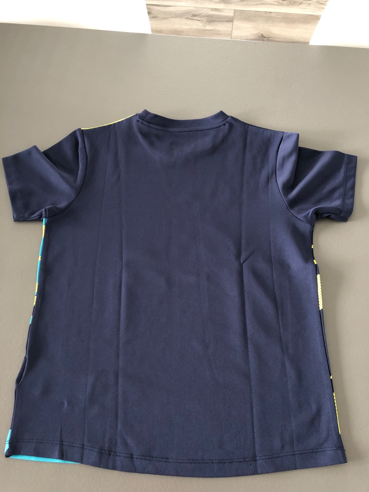 Predám chlapčenské tričko. Troška je okolo krku vyblednutá farba. Rozmery: plecia - 32cm, šírka popod pazuchu - 37cm, dĺžka - 54cm.