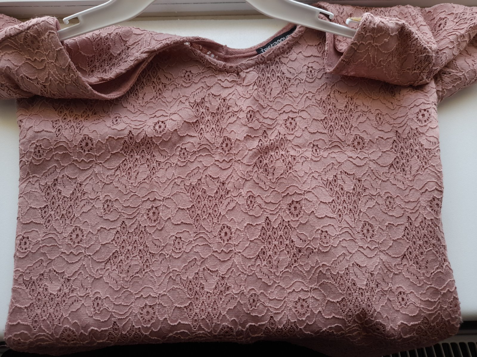 99% polyester, dĺžka 52cm, šírka v páse 37x2cm, prsia 43x2cm, čipkovaný