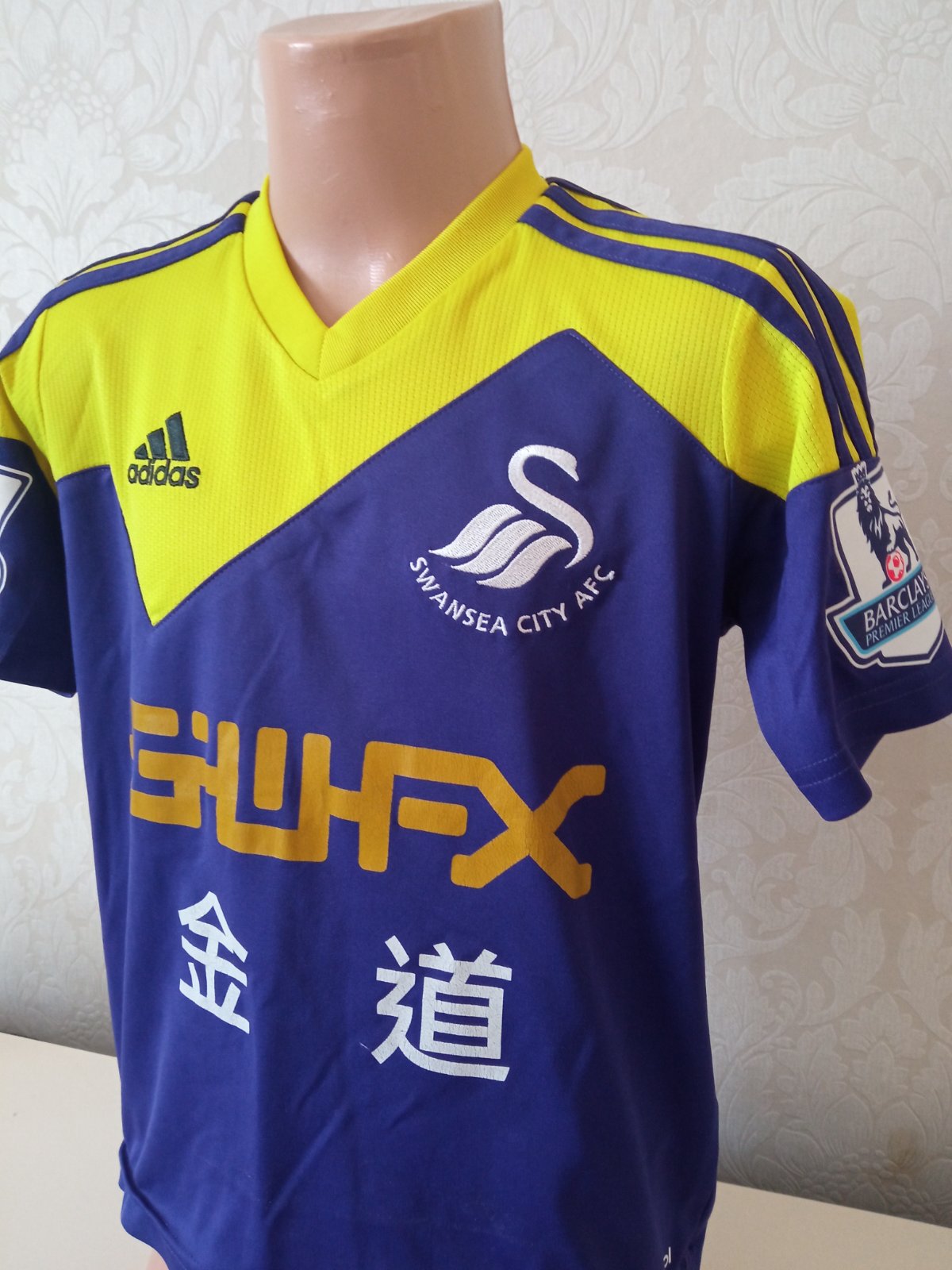 Chlapčenské športové tričko s krátkym rukávom, fialové, žlté, biele, potlač, nápis, elastické, véčkový výstrih, materiál 100%polyester.