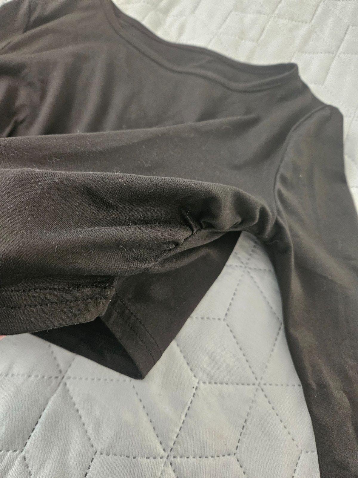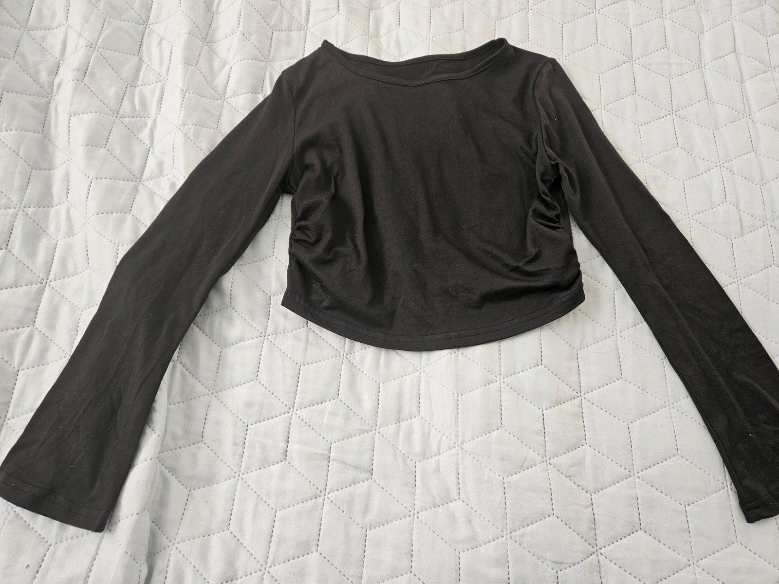 Predam cierne kratke tričko v top stave 1x oblečené chvíľu veľkosť odhadom 134/140. Vzadu kratšie, boky nazberkane.
