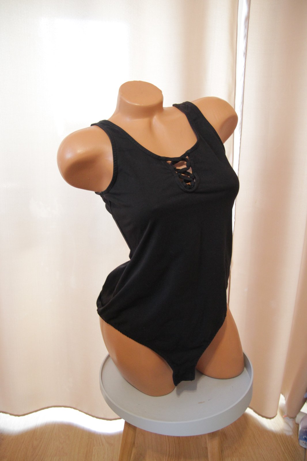 Čierny bavlnený body top, veľkosť L. Nosený, bez poškodení.