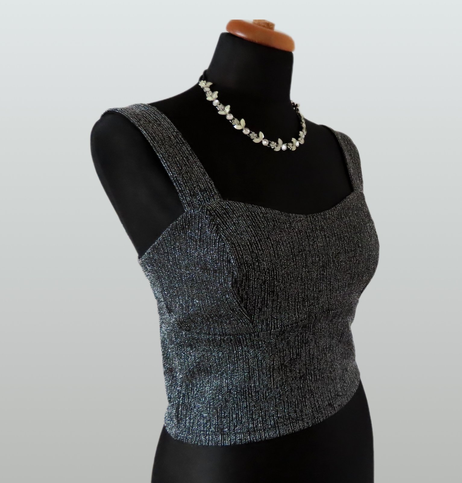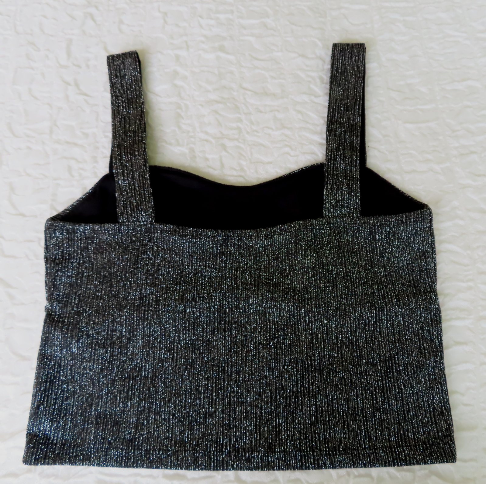 Lurexový, čierno-strieborný cropptop Terranova, veľ. M, rozmery: