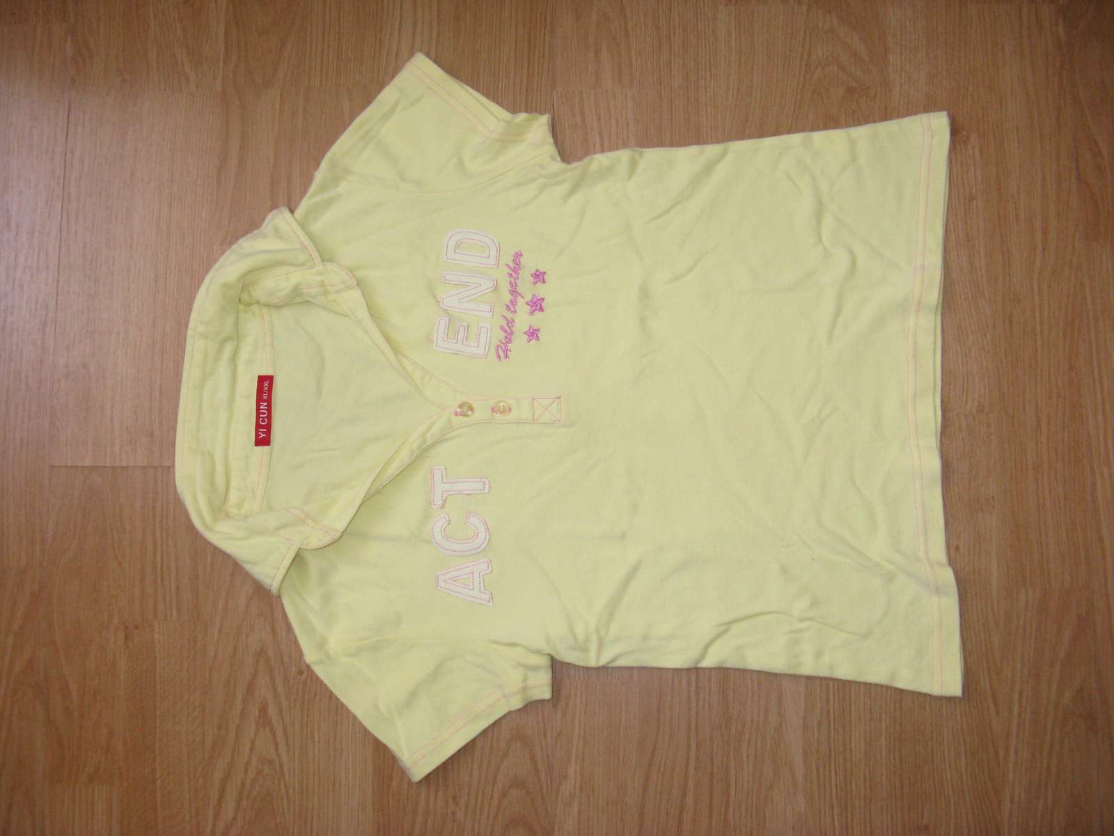 predám pekné žlté tričko, bez známok nosenia, veľkosť písaná iná, ale zodpovedá 42. Miery : šírka popod paže je 44 x 2 cm, v klude, ale natiahne sa aj do 50 x2 cm, celková dĺžka meraná cez stred chrbáta je 51 cm bez límca.
