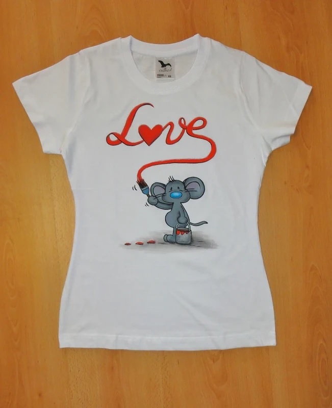 originálne tričko s myškou , ručne maľovane; Adler ;