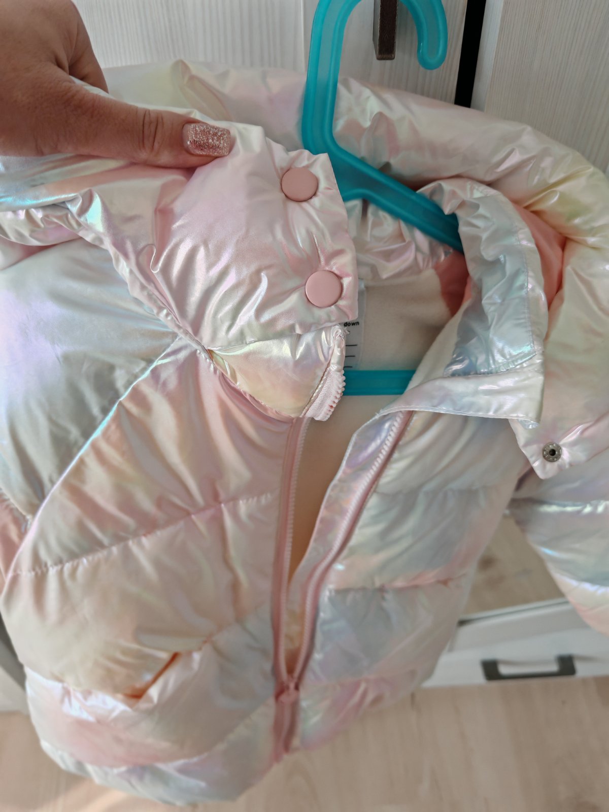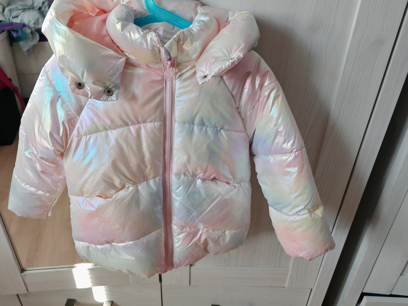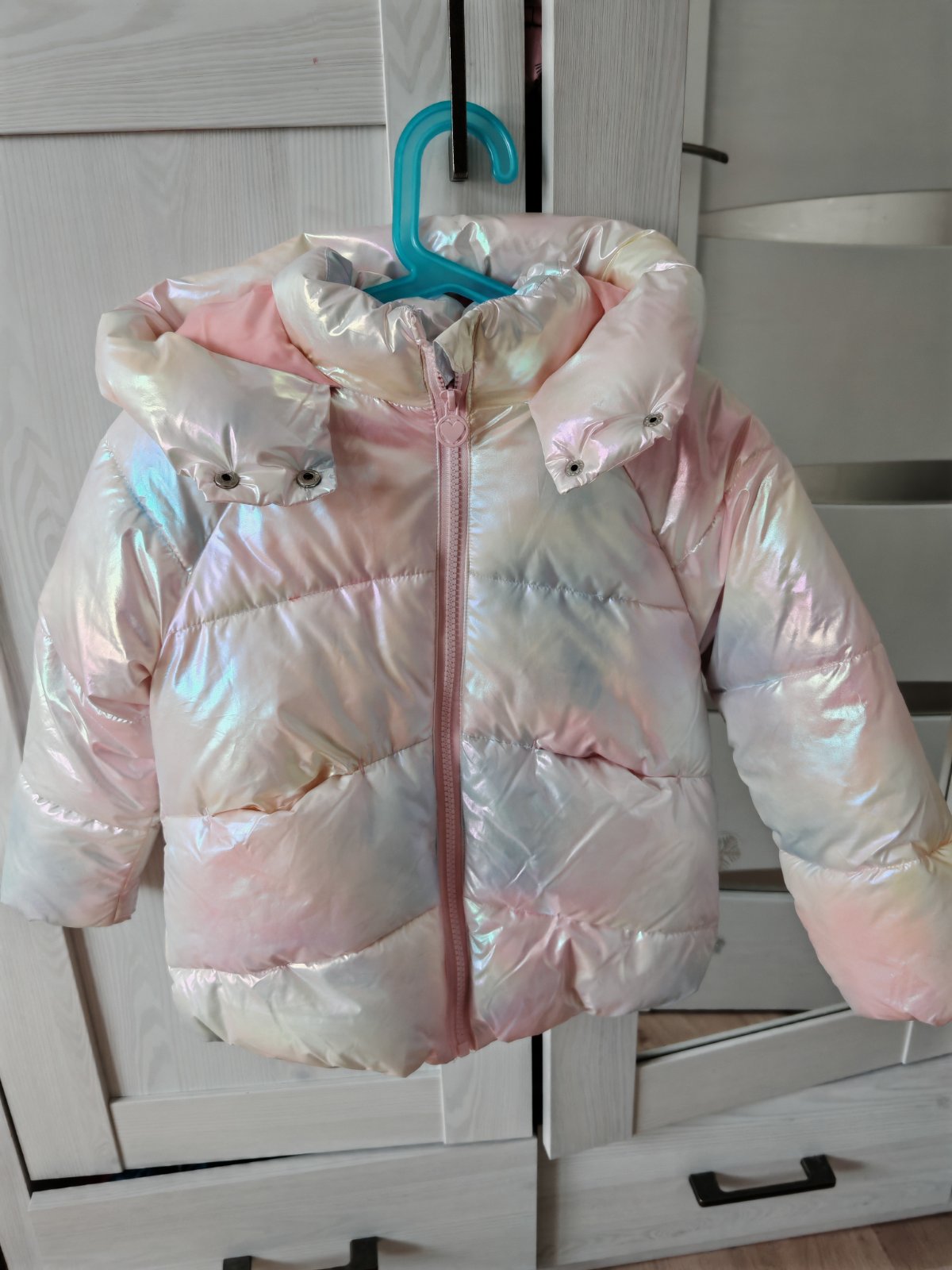 Nadherna bunda 1 x oblevena nadherna a mojej bola kratka, dcera nosila skor obycajne bundy, bolo mi lutodat jej ju do skolky cize je top ako z obchodu nadherna neolutujete. Je biela s menivym odleskom, krasna.Ale sadne aj na 110 aj 116