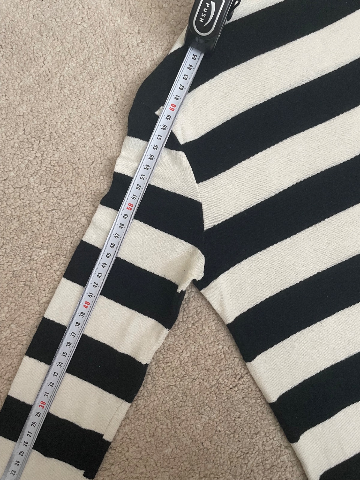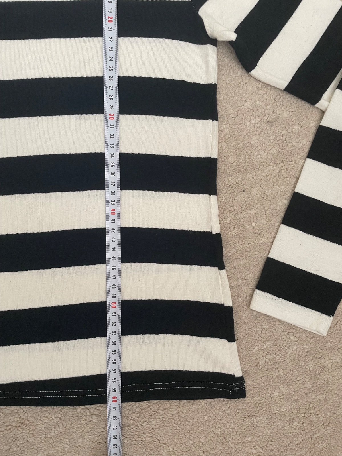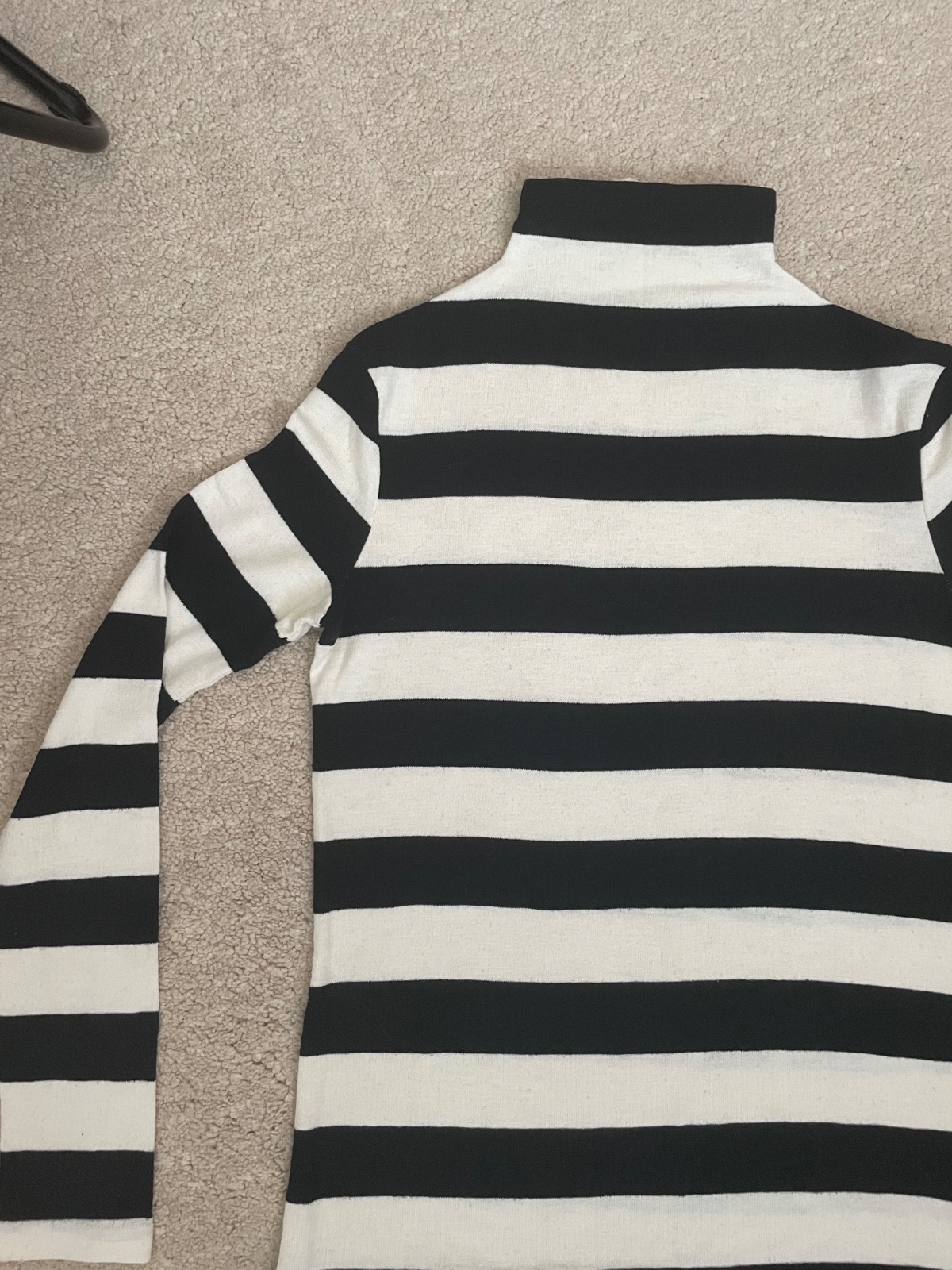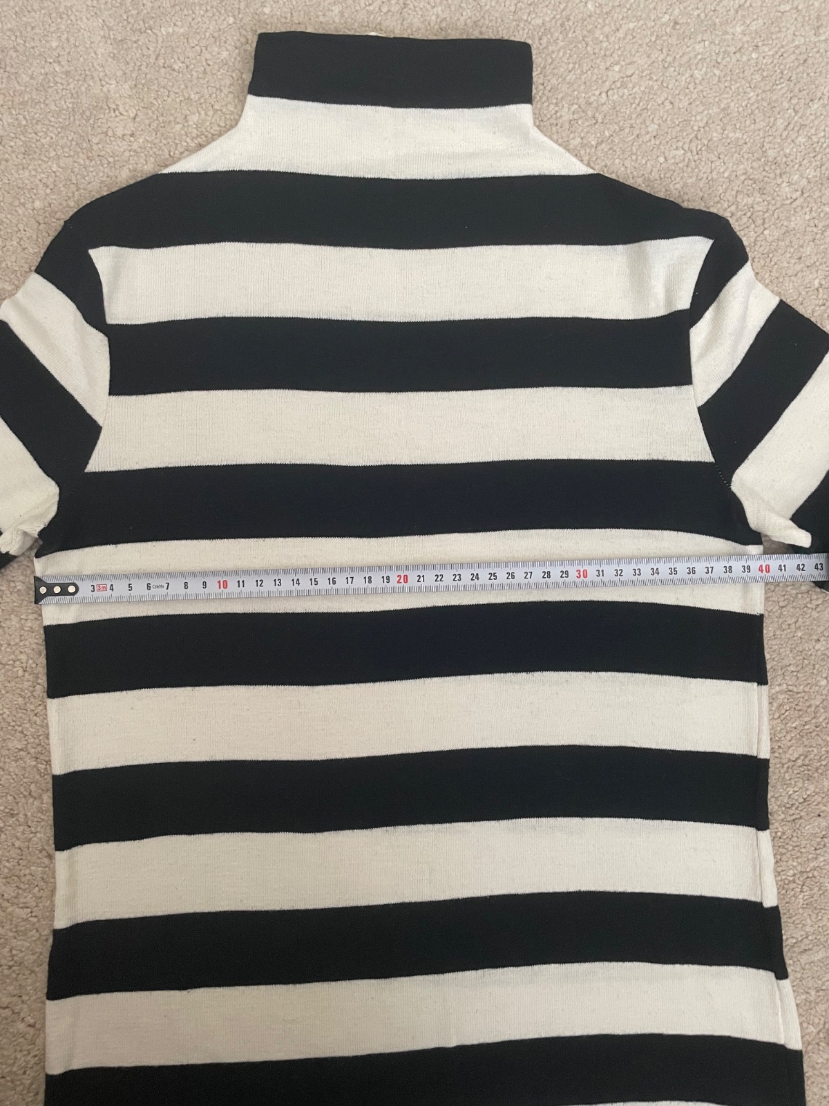 Čiernobiely pásikavý svetrík, mierne rolákový golier. Elastické. 95% bavlna.