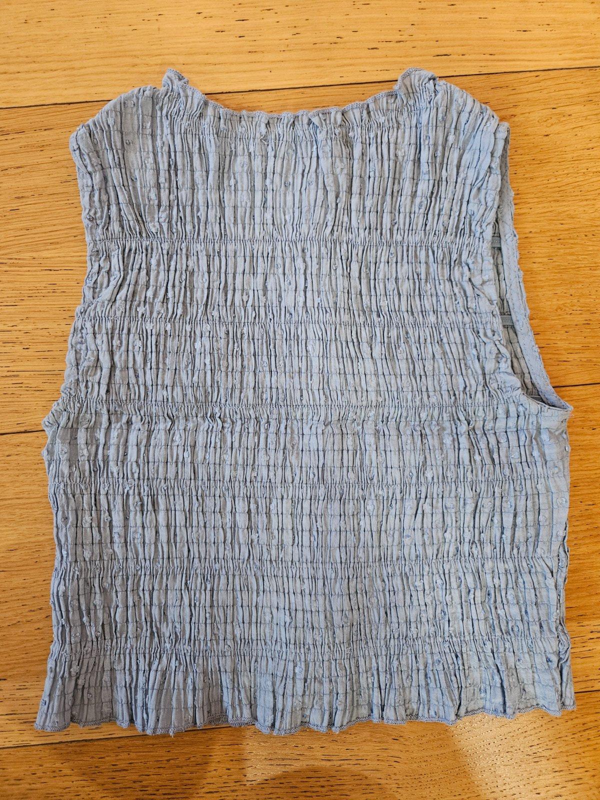 Krásne tričko je ako nové Bledomodrá farba s jemnými kvetinkami Užšieho strihu, vrúbkované materiál bavlna Značka ZARA veľkosť 140 na 10 rokov dlžka 48 cm šírka 2x 30 cm