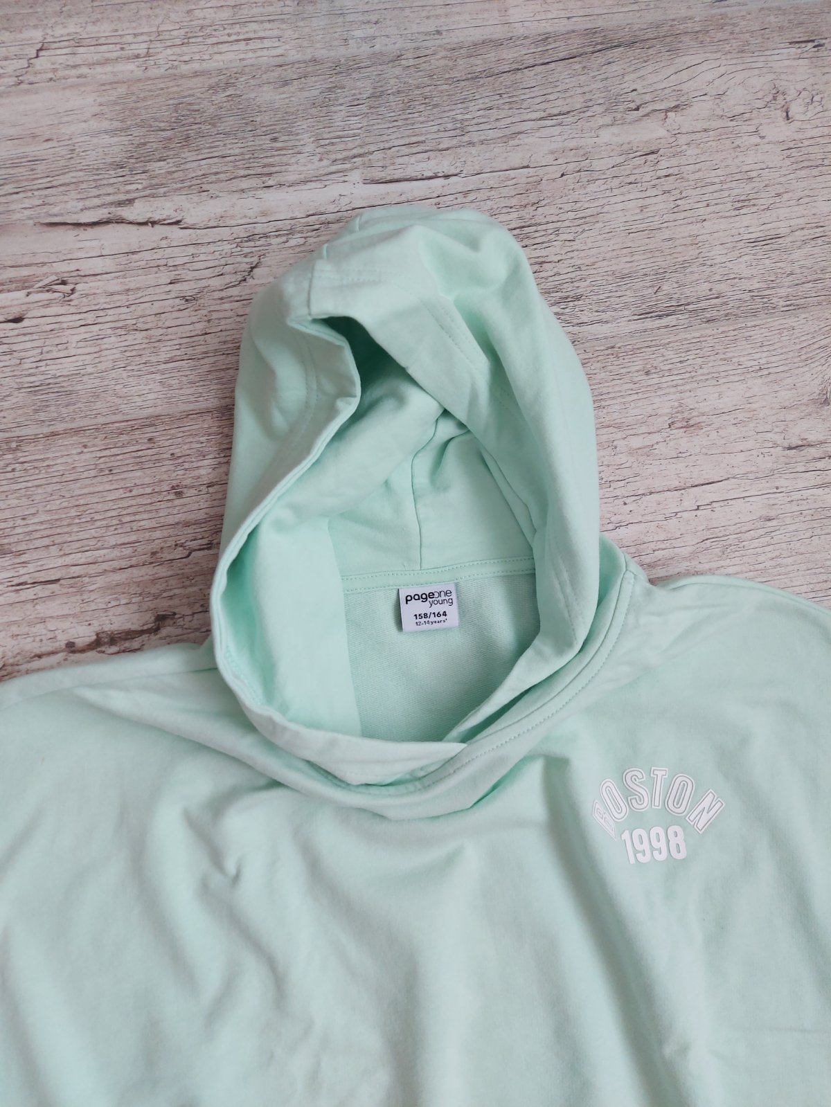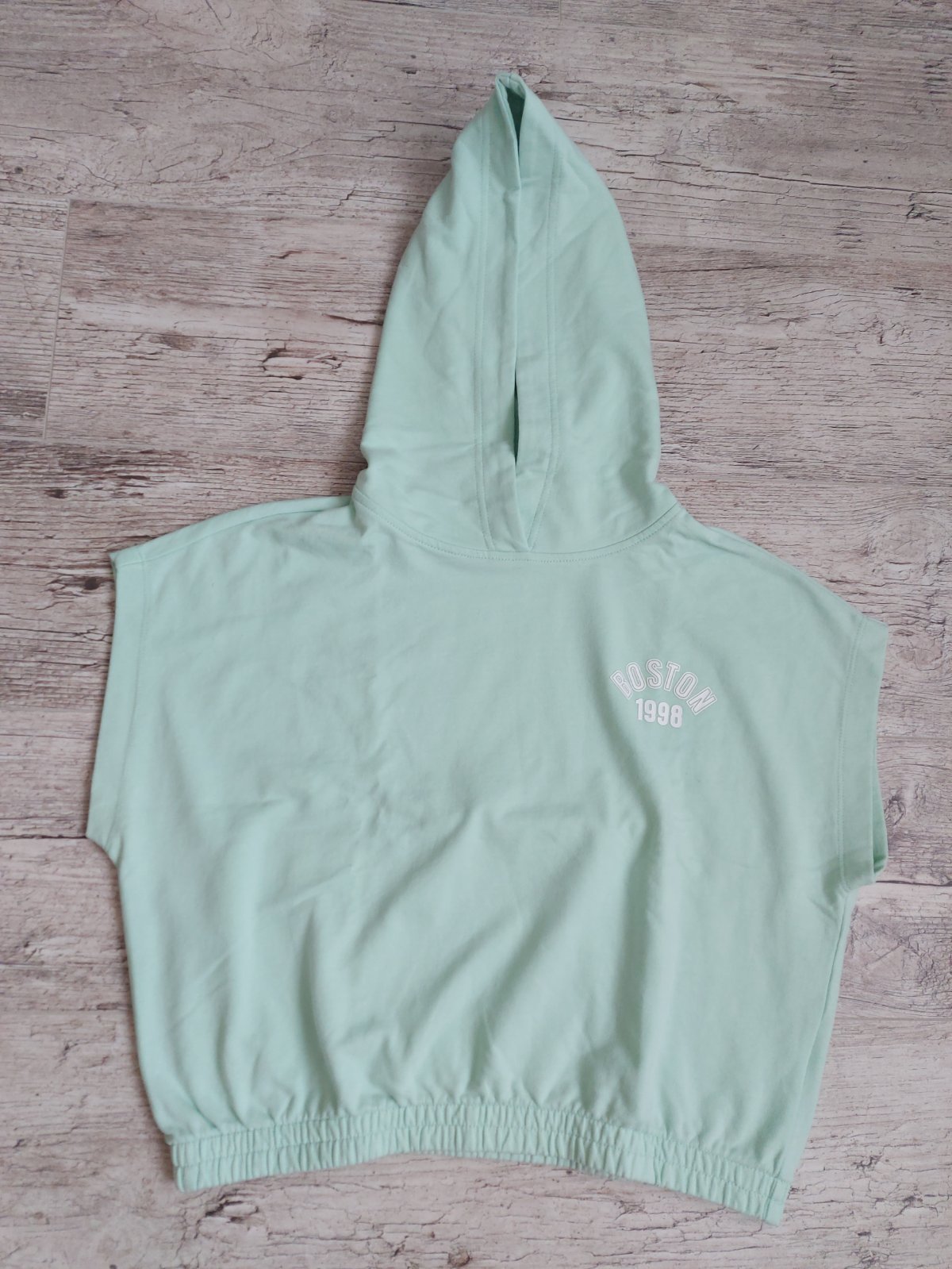Predám dievčenské tričko s kapucňou vo veľkosti 158-164. Dĺžka chrbta 44cm.