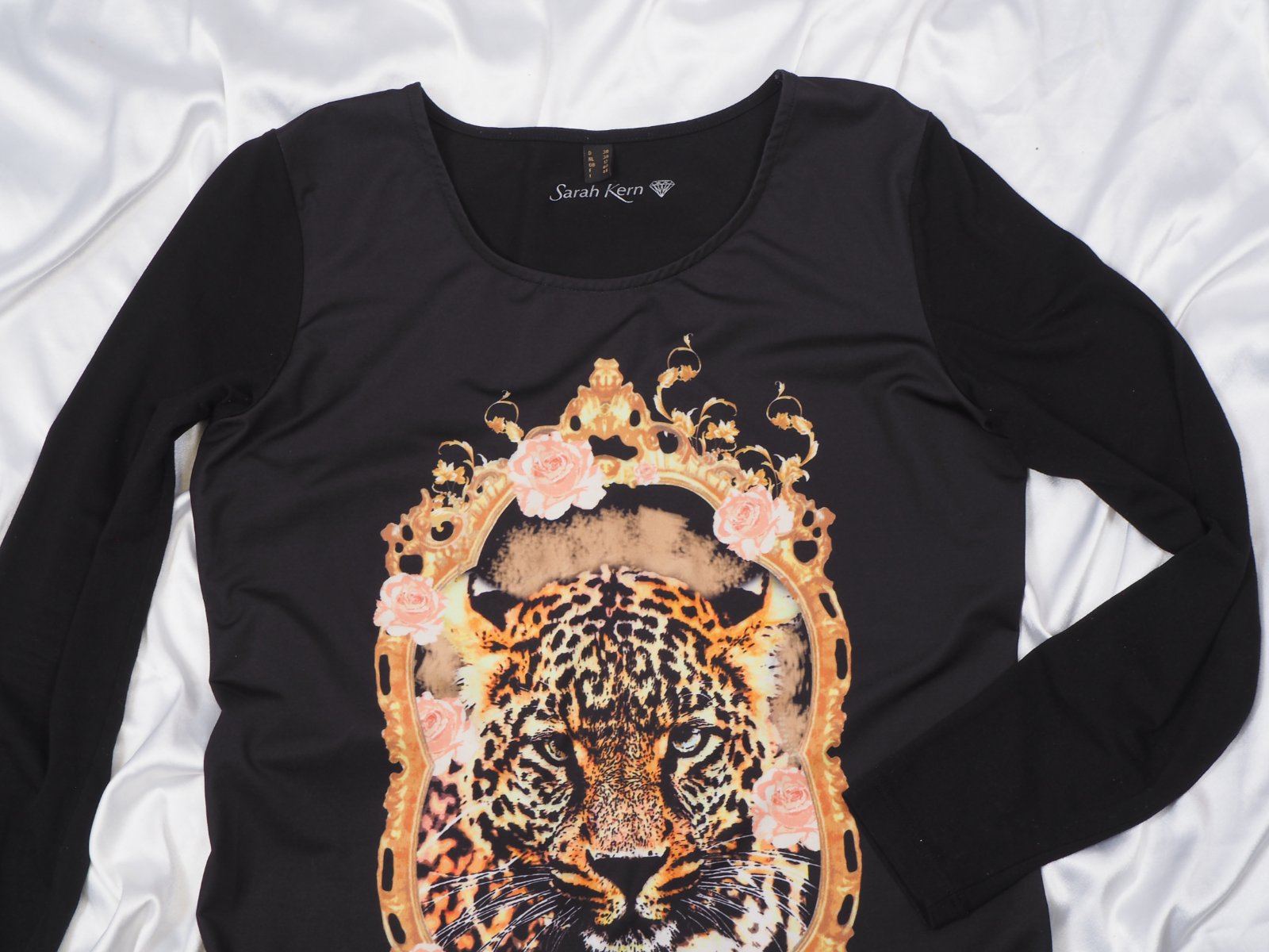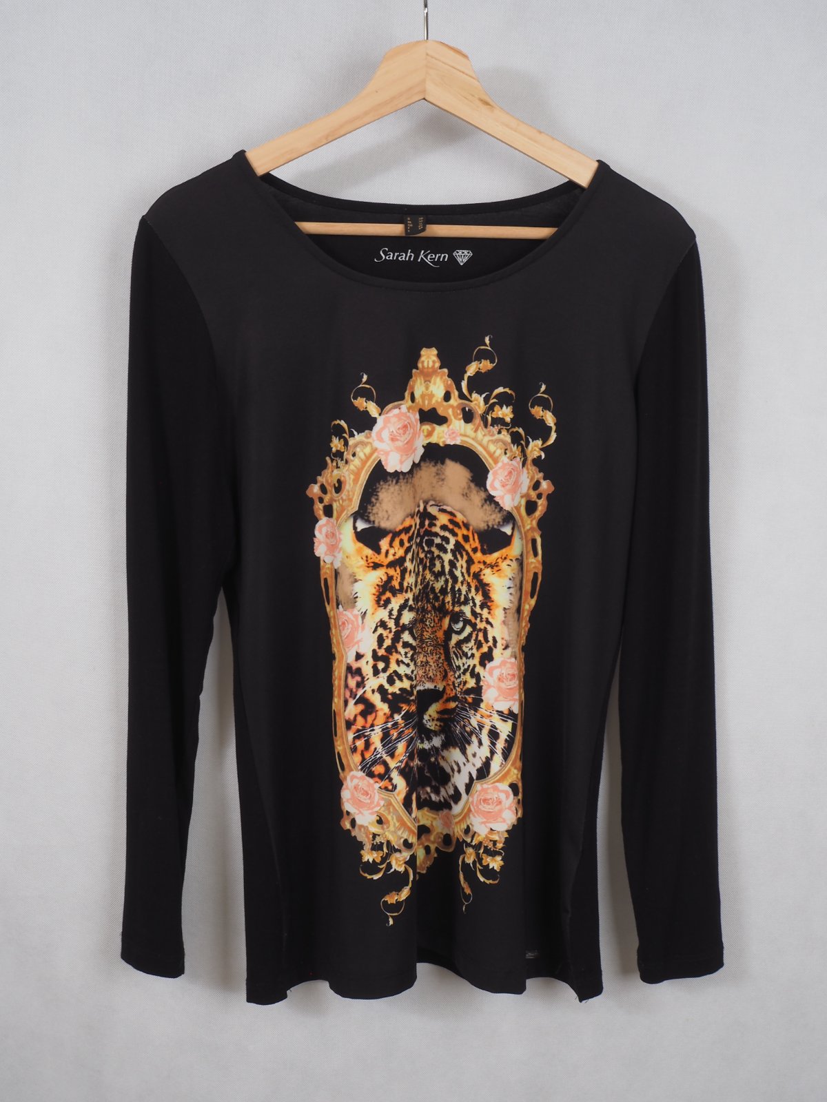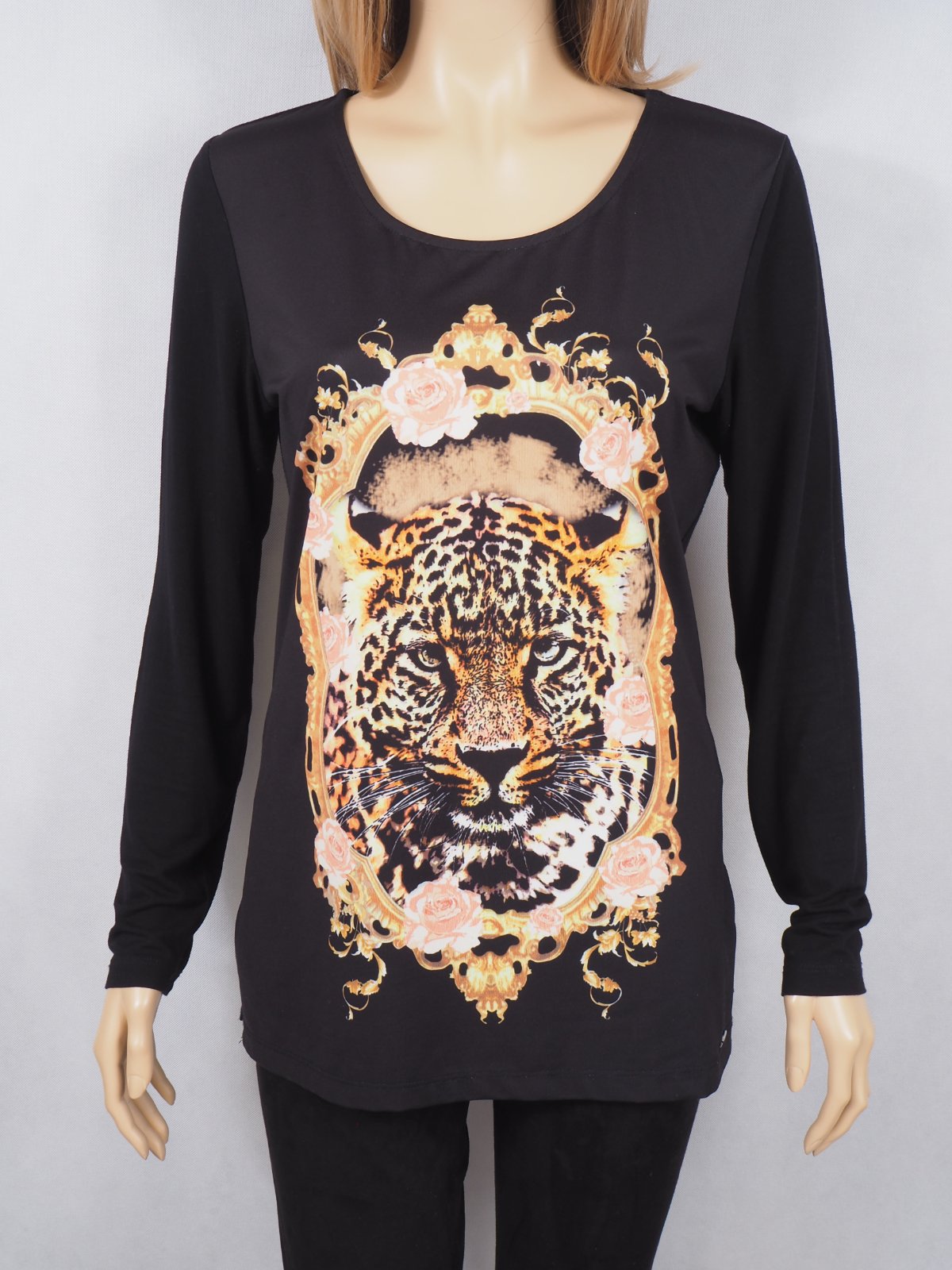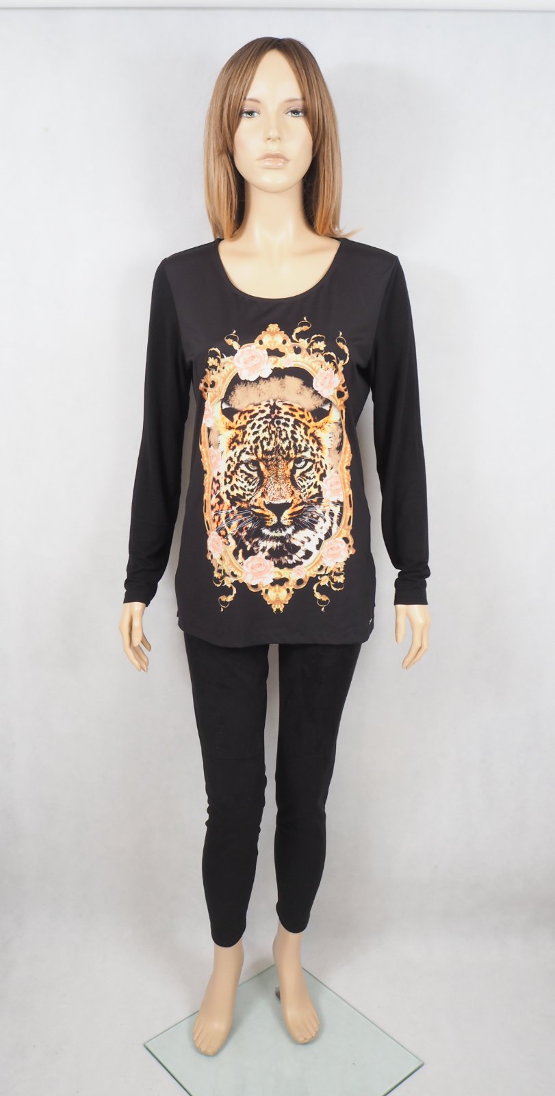 Kvalitný čierny top s potlačou vpredu, materiál viskóza, super stav.
