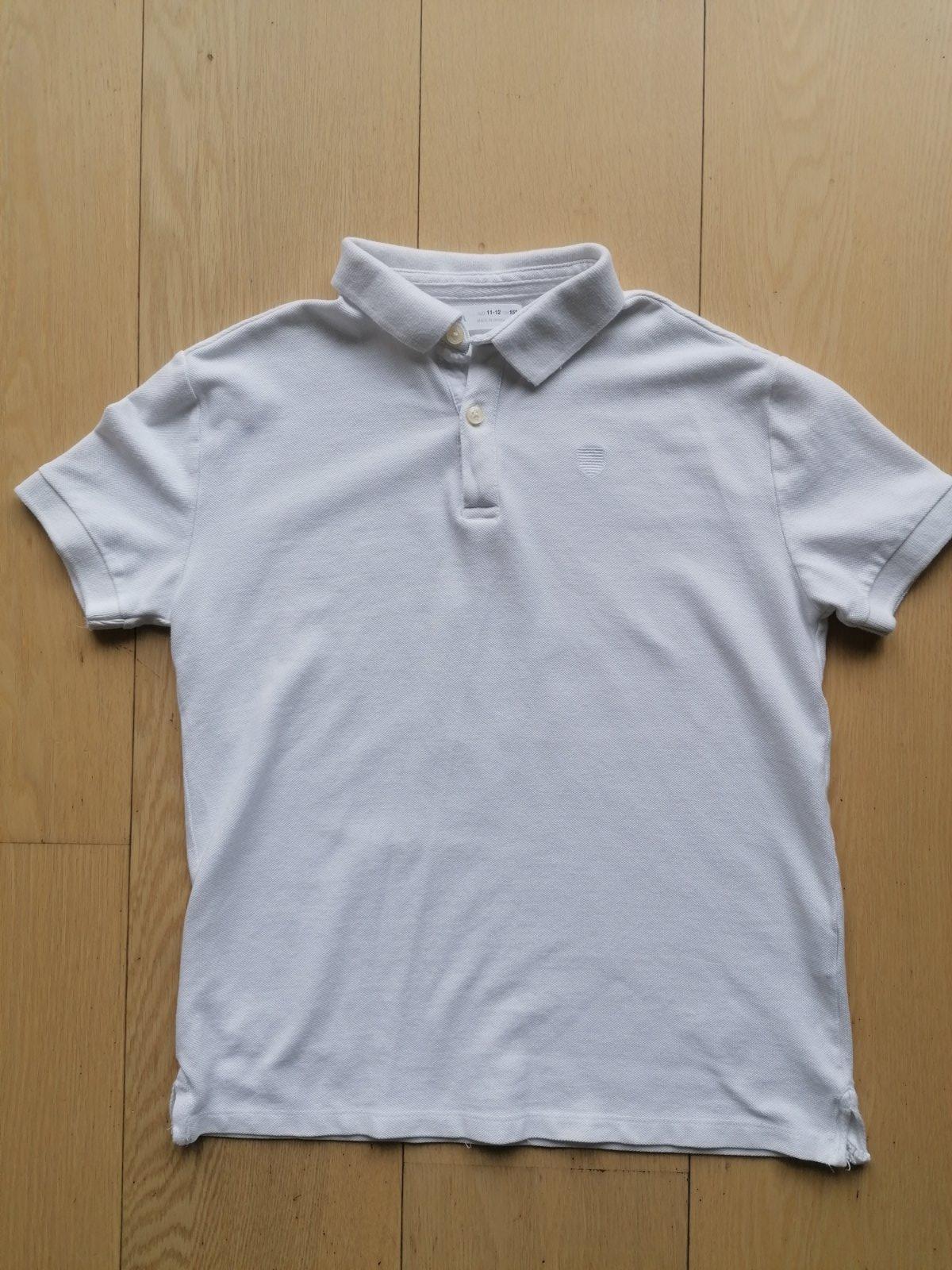 Biele tricko s riflovou nasivkou, zn. Zara, velk. 152 (aj zodpoveda). Je nosene s vela dalsimi, v dobrom stave, bez poskodeni.