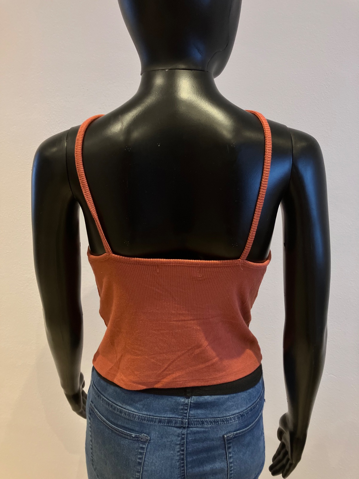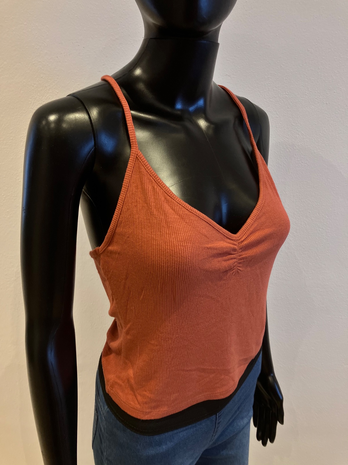Dámske tričko na tenké ramienka, jednofarebné škoricové, elastické, tenké, materiál 95%viskóza,5%elastan.