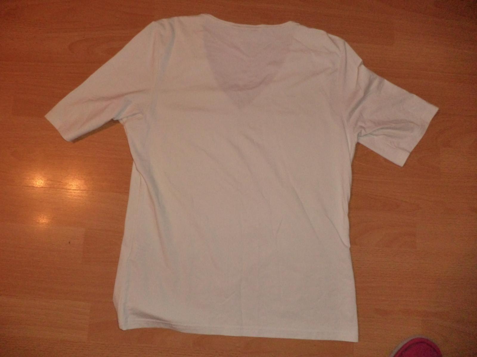 Predam pekne biele tričko s kratkym rukavom , vystrih do večka ,malo nosene dlžka 60cm ,obvod hrude 88cm,