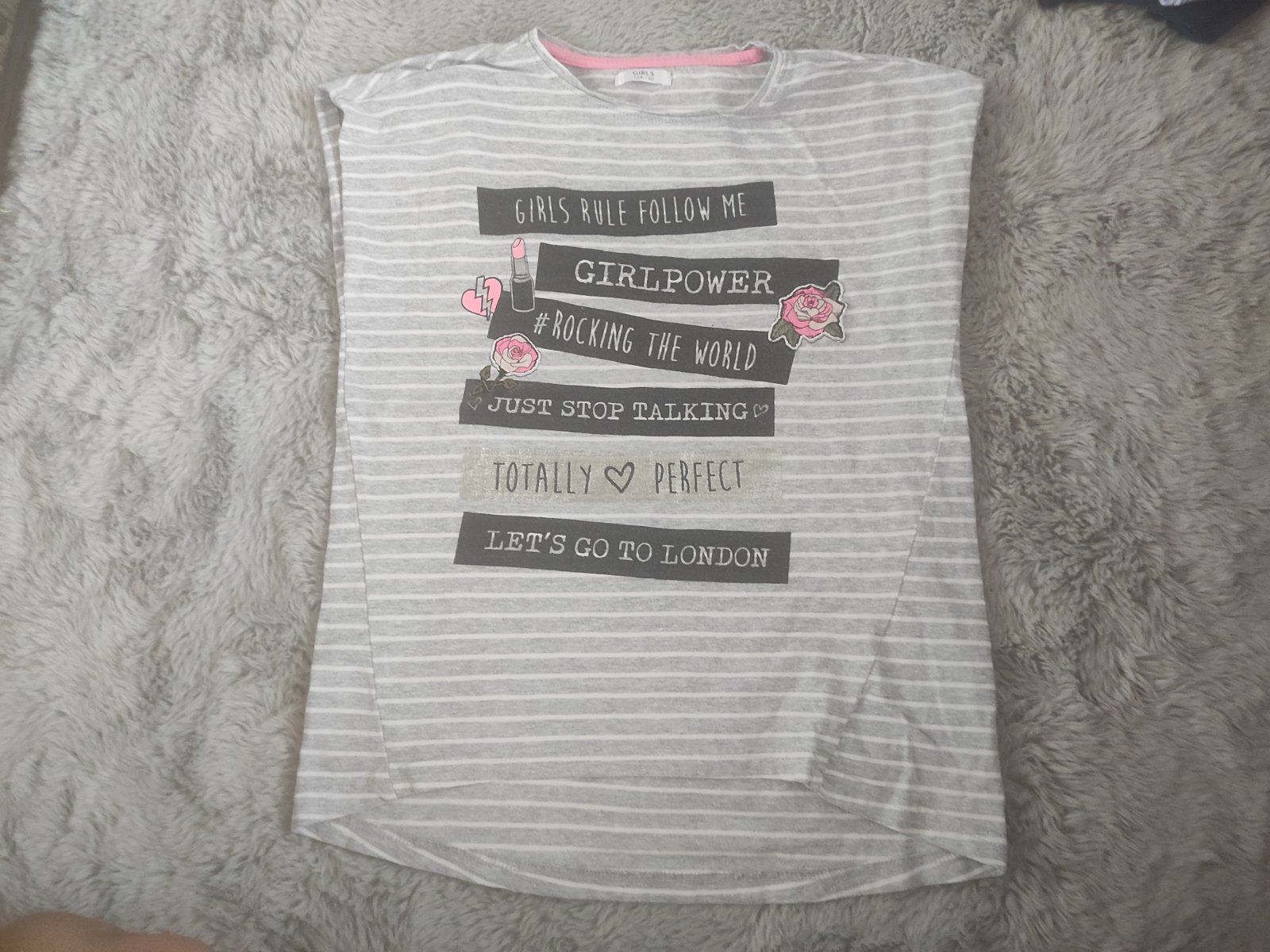 Tielko svetlo sivé, veľkosť cca 134, dĺžka 52 cm, šírka 33 cm. Nosené, bez poškodenia. Cena 0,50 EUR + poštovné