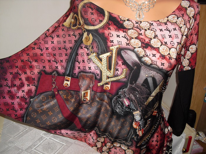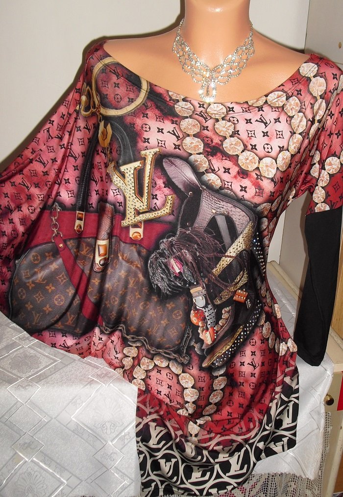 predam nadhernu tuniku,je raz oprana , bez chyb, jemnucky material, ma asymetricky tvar komplet cela , rukavy motylie tiez kazdy iny tvar . su na nej lv aplikacie. zdobena kamienkami. nosi sa navolno na postavicke, padavo , ziadne obtiahnuto. merat sa neda nakolko je asymetrika bez obrysov. ale ide na velkost postavicky s/m. ako je vidno fotena na figurine , ktora je s/m velkost tiez.