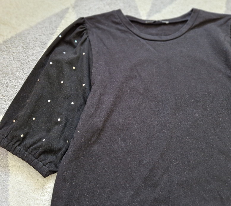 Veľmi dobrý stav, bez kazov. Tričko zn. Zara. S aplikáciami kamienkov na rukávoch. Veľkosť S. Dĺžka 53cm.