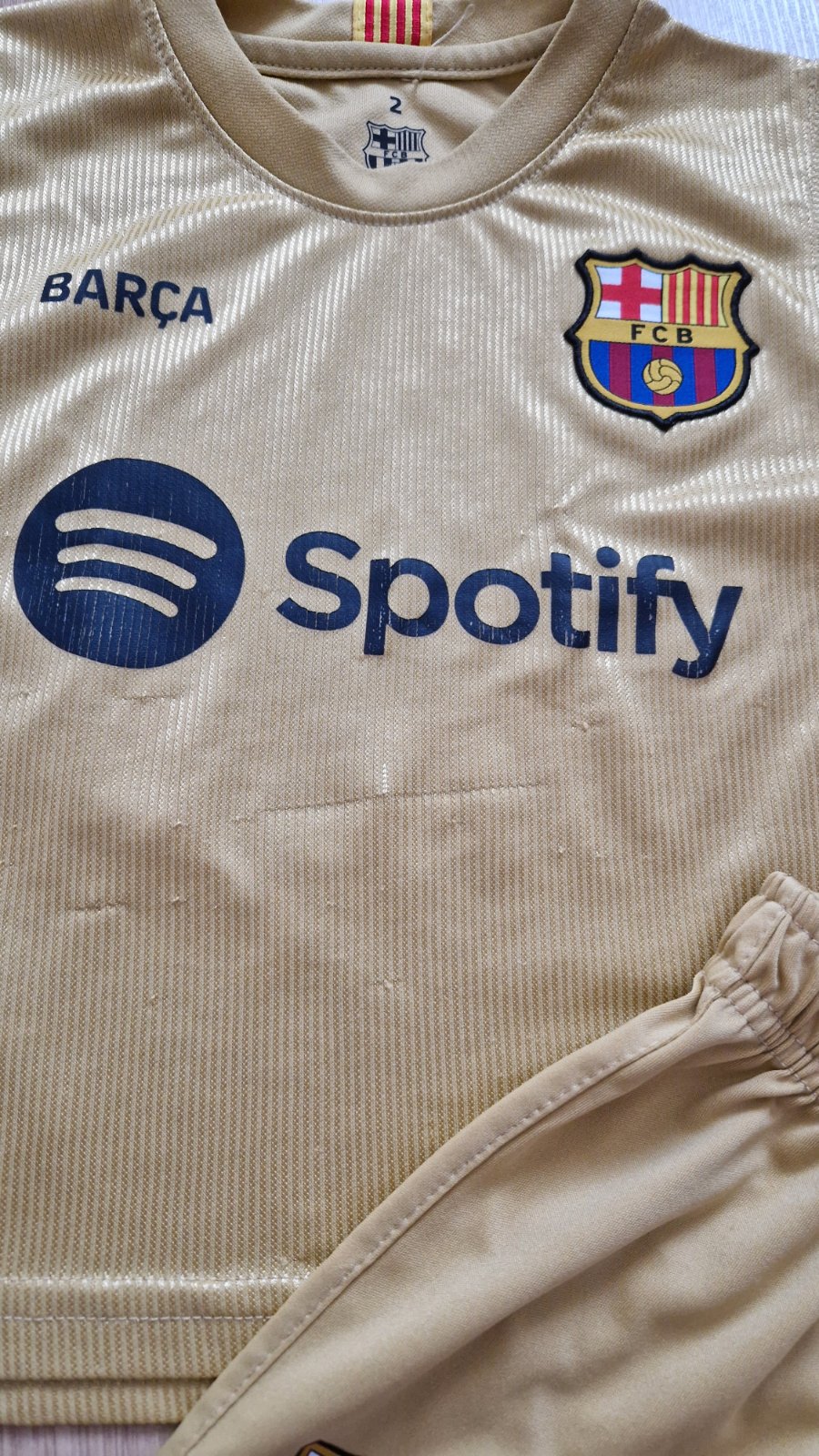 Futbalový dres je v zachovalom stave na donosenie. Na tričku je mierne zatiahnuté.