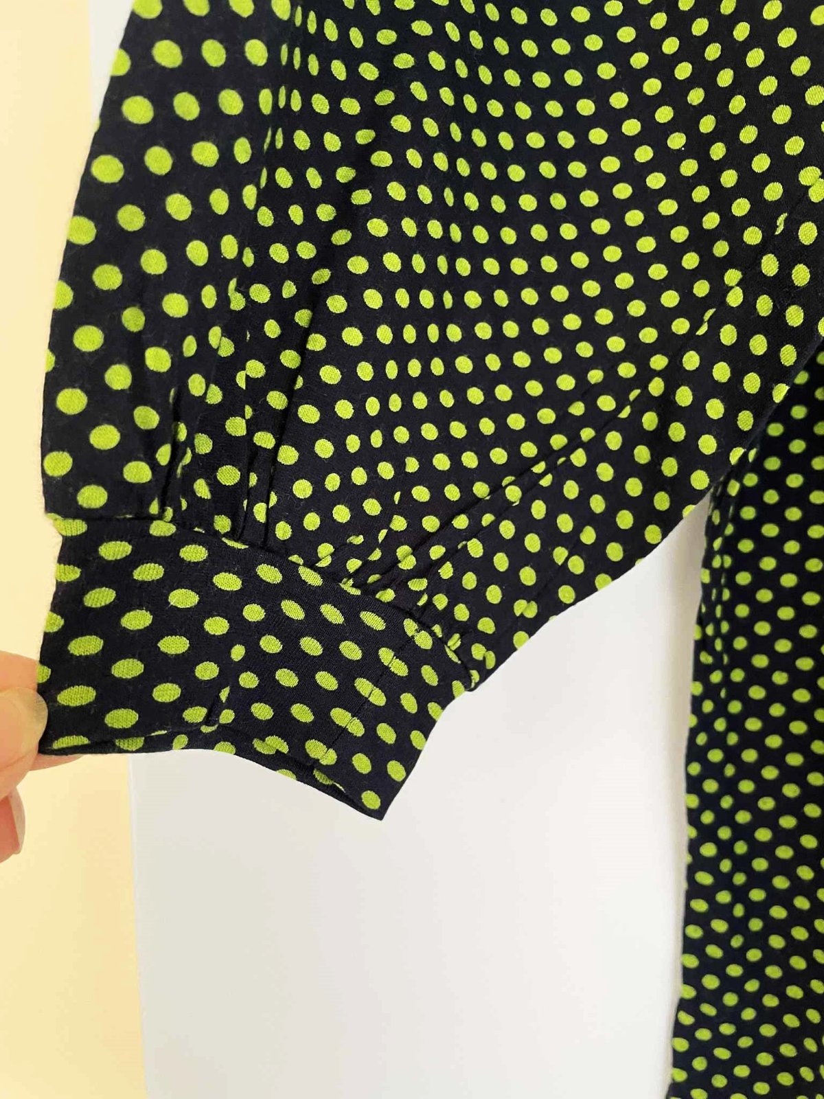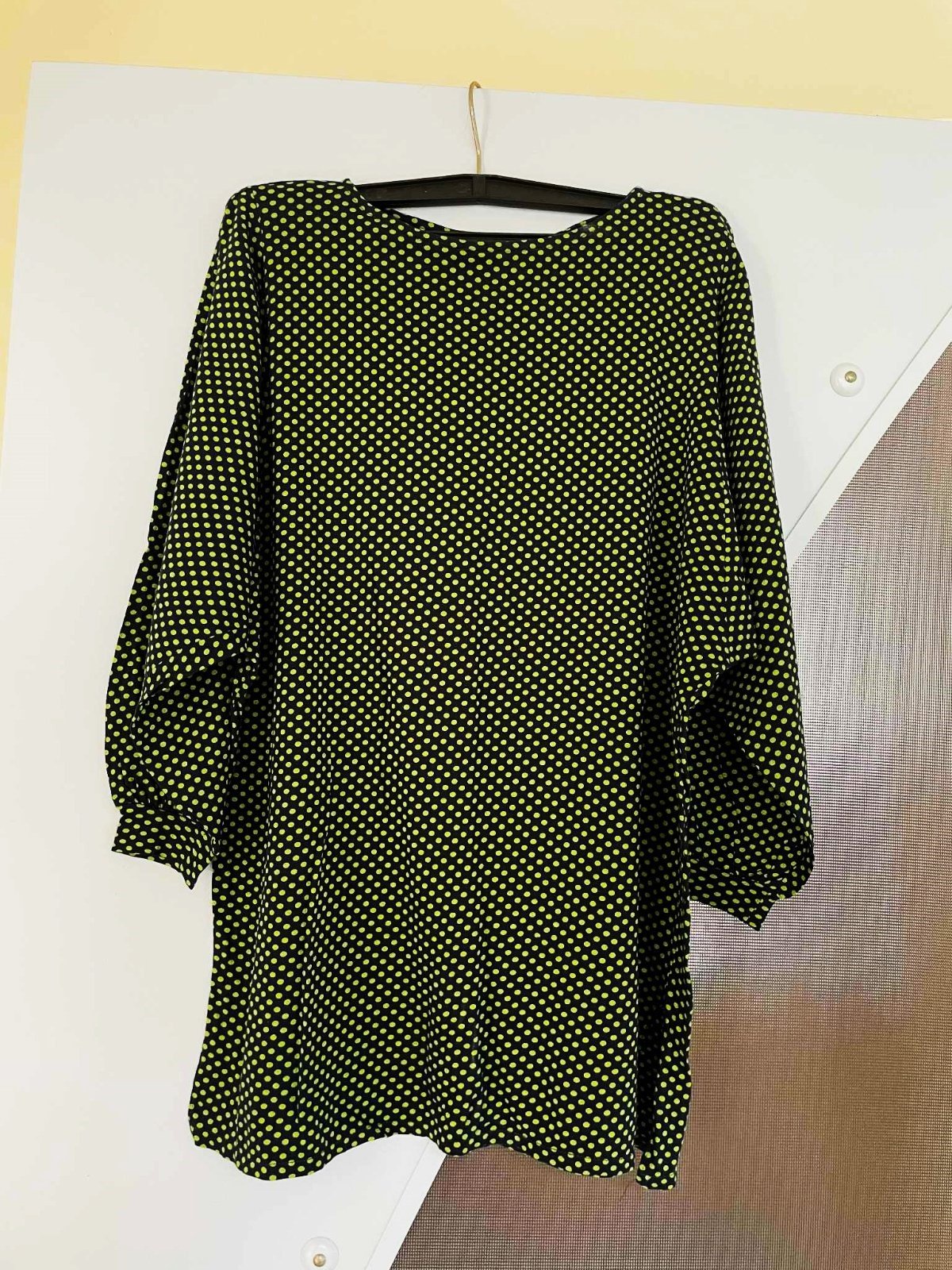 takmer nenosené, veľmi kvalitné bodkované dlhšie tričko,voľne riešený rukáv, na boku rozporky,materiál = kvalitný uplet,pekne padavé,nosí sa volné,krásne zakryje väčšie prsia....