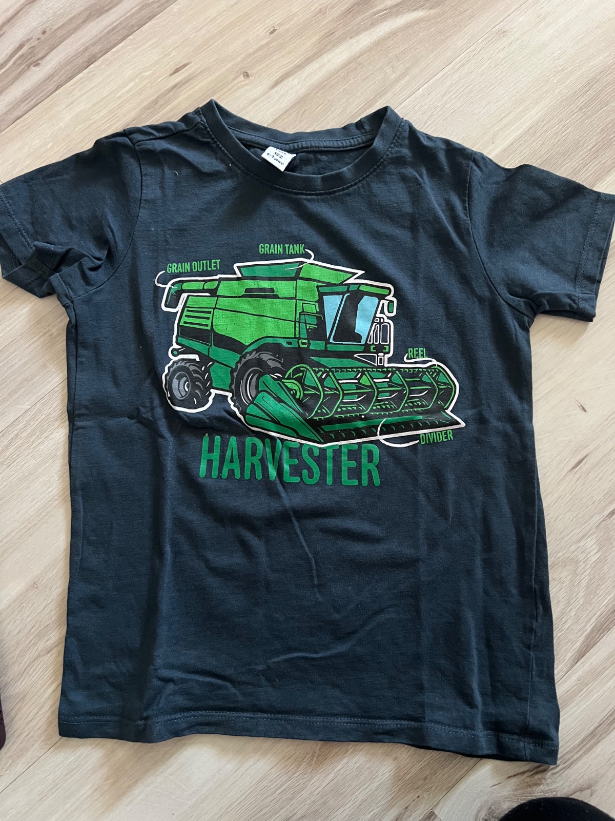 Predám chlapčenské tričko zn.TAKKO vo veľ.122 tmavo-sivé s peknou aplikáciou dinosaura.Materiál 100% bavlna.Dľžka trička je 49cm,šírka je 35cm.Tričko je v 100% nepoškodenom stave.