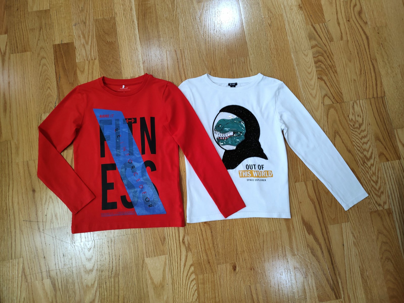Na predaj tričká s dlhým rukávom pre chlapca. Červené značky Name it, biele značky Kiabi. Veľkosť 116 (na 6 rokov). Top stav.
