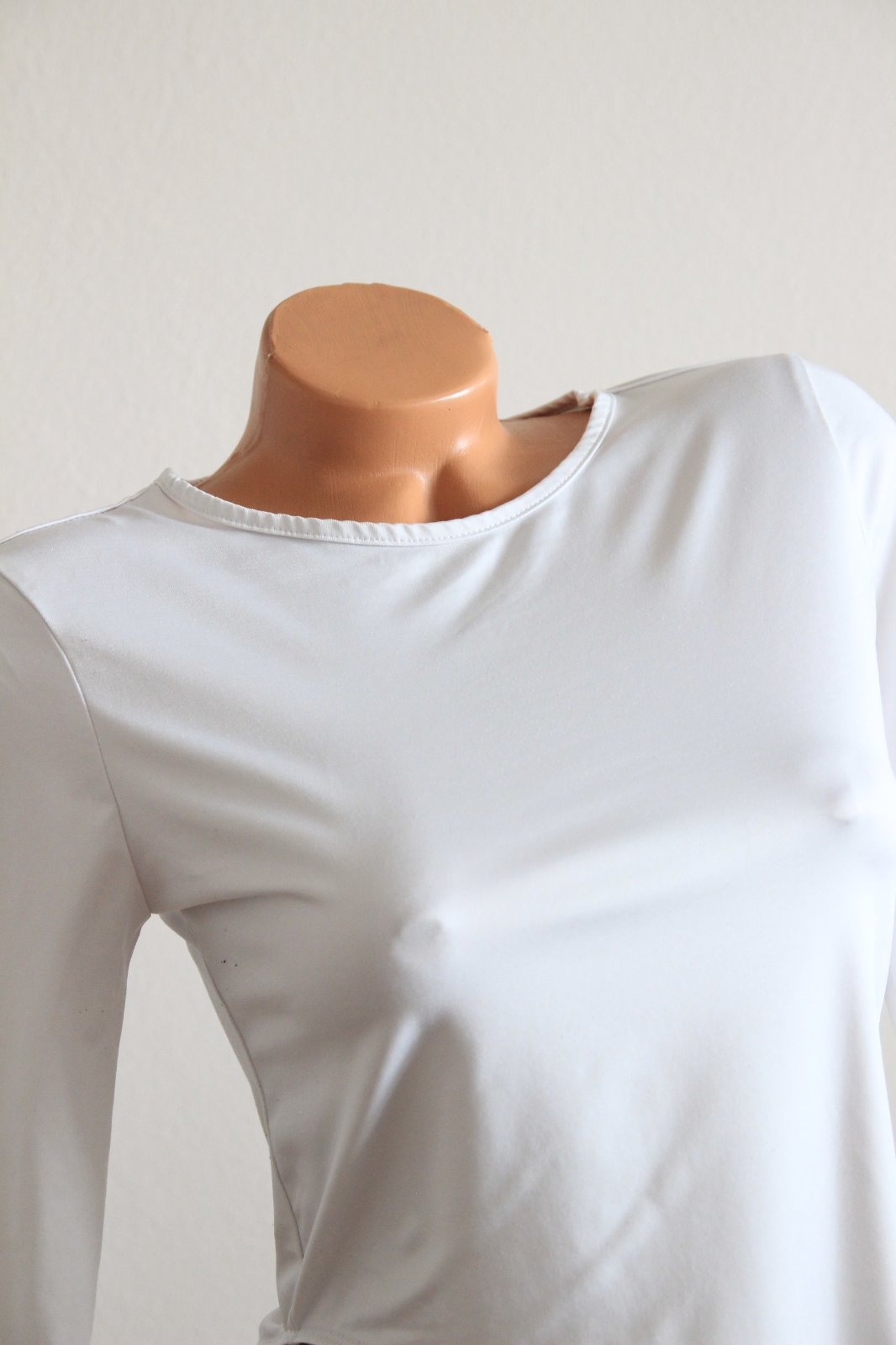 Biele body tričko s dlhými rukávmi, nosené - má pár žmolkov. Veľkosť M/L.