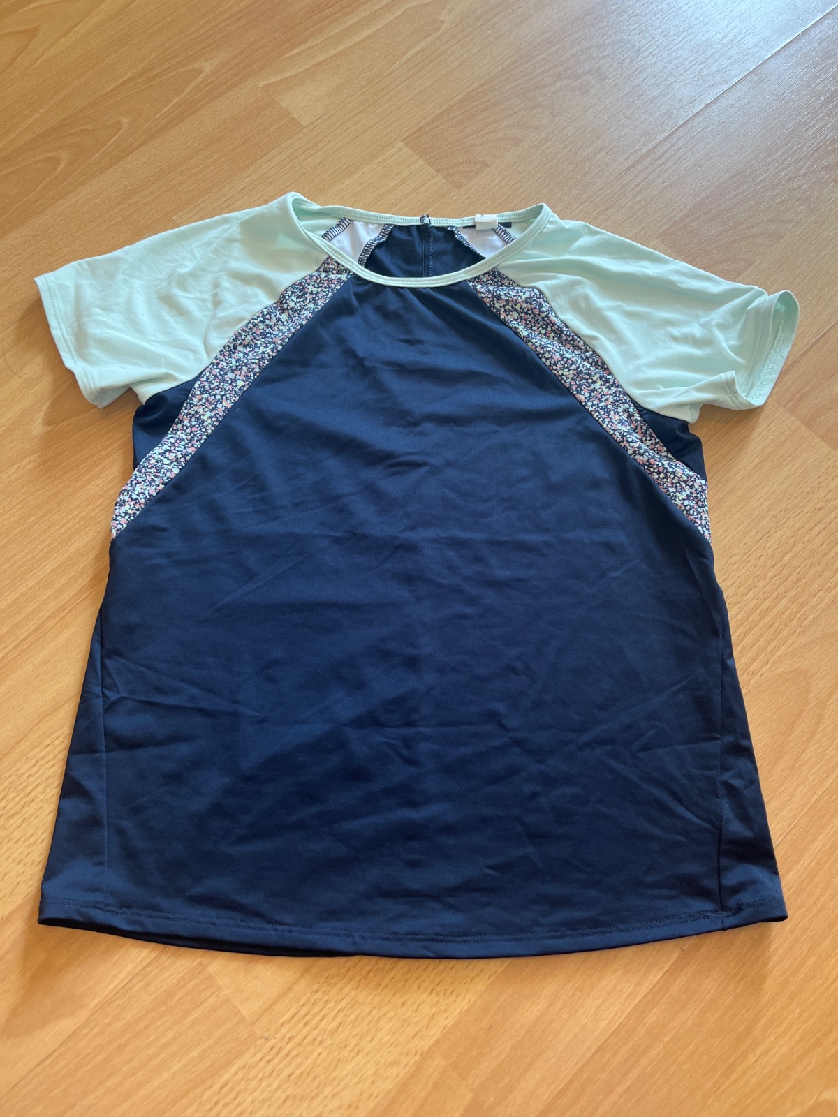 Predám používané, nepoškodené nezničené funkčné tielko na leto, kúpené v decatlon v Chorvátsku, najobľúbenejšie tričko dcéry v lete, v.146/152, rychloschnuce, paradne, rozmery - d 58 cm, š 41 cm.