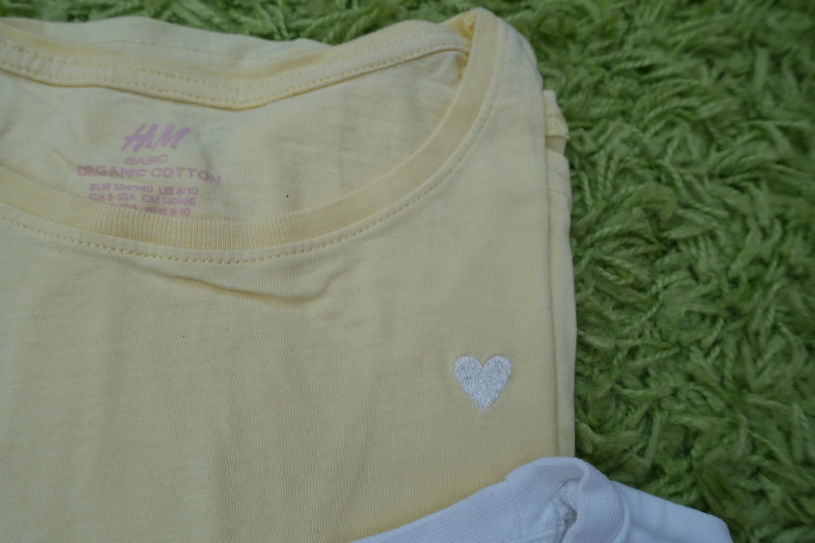 Predám 4 krásne, jemné tričenká s vyšitým srdiečkom vo veľkosti 134/140. Všetky tričenká sú rovnakej značky. Prekrásne. Cena za 1 ks je 4,50 e. Predám aj samostatne. Farby horčicová, pastelovo žltá a 2x biela. Srdiečka sú podšité z opačnej strany, neožierajú. Boli použité 1x, ale sú top stav. Nemajú žiadne fľaky, žmolky, či iné poškodenie. Horčicové a oba biele majú dĺžku 54 cm. Svetlo žlté má dĺžku predného dielu 52 cm a zadný diel je ešte o 4,5 cm predĺžený. Predávam aj samostatne. Cena je uvedená za 1 ks. (G)