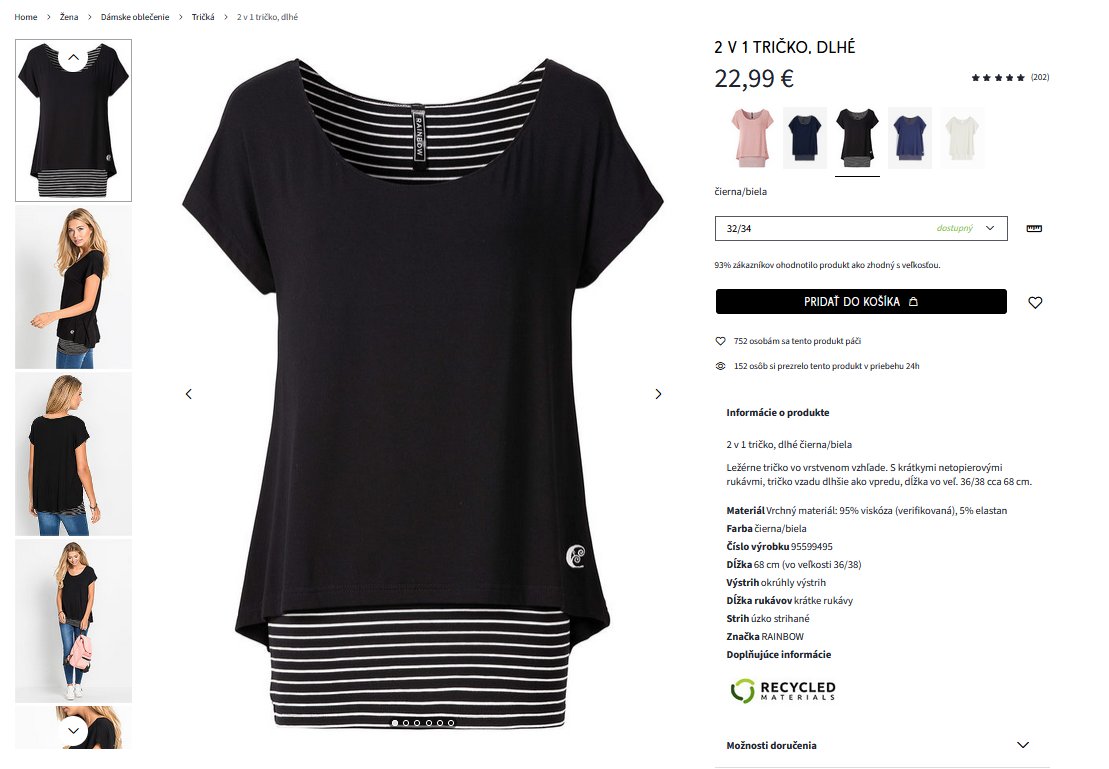 Dámske letné tričko 2 v 1- Značka Bonprix. Veľkosť 36/38. Rozmery: dĺžka 76 cm, šírka v podpazuší 2x49 cm. (Pôvodná cena 22,99 EUR)