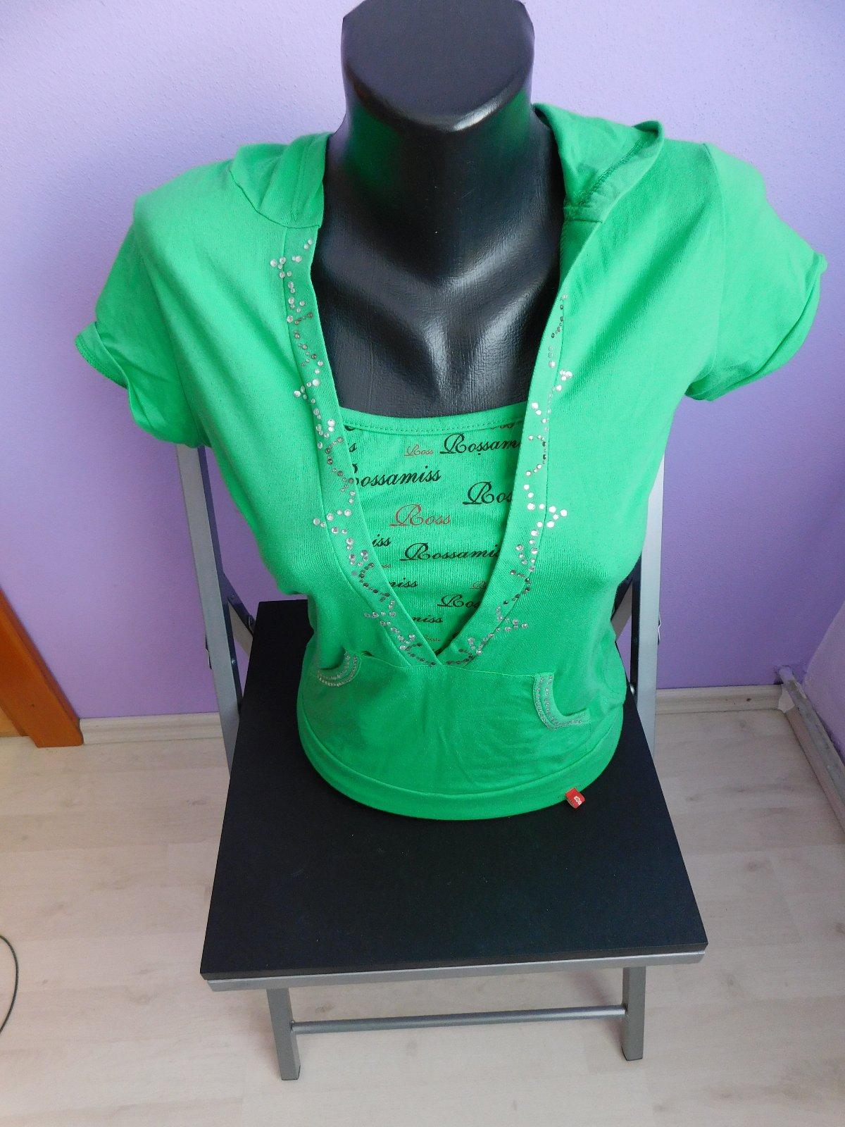 Obycajne bavlnene tricko v dobrom nosenom stave. Ma zelene kovove gombiky.