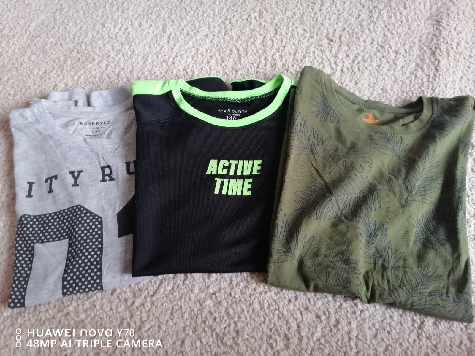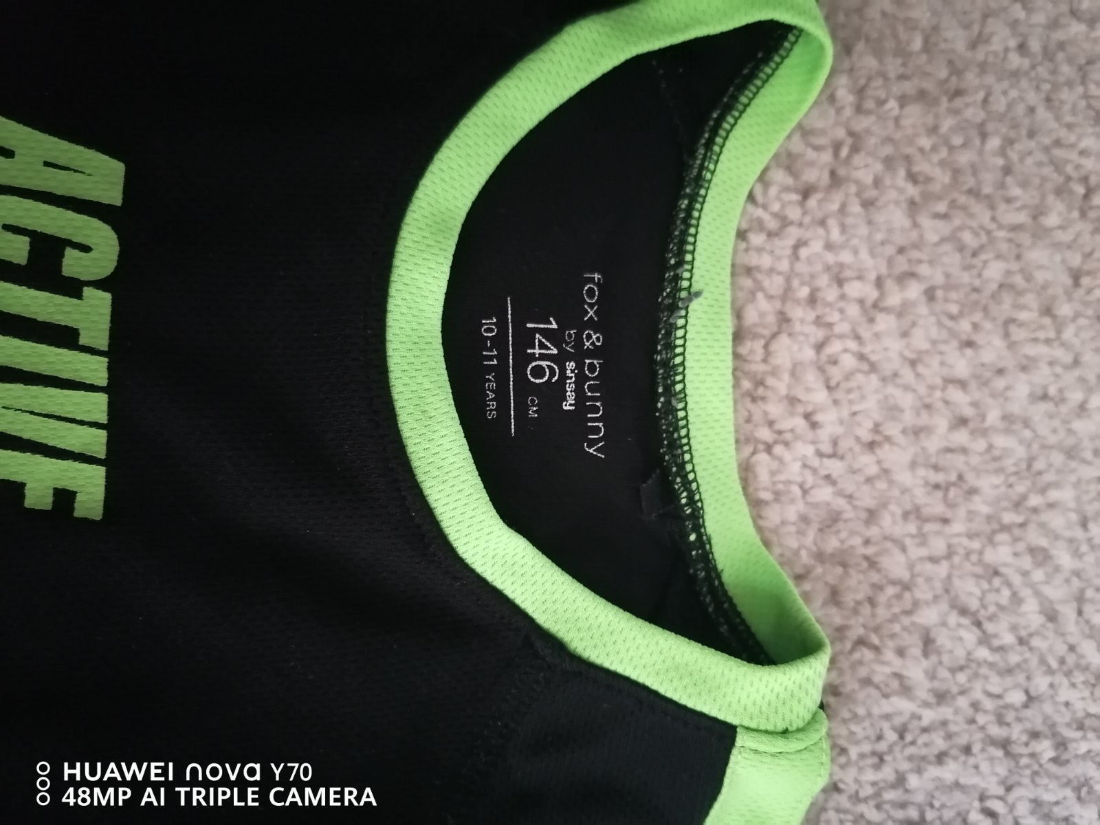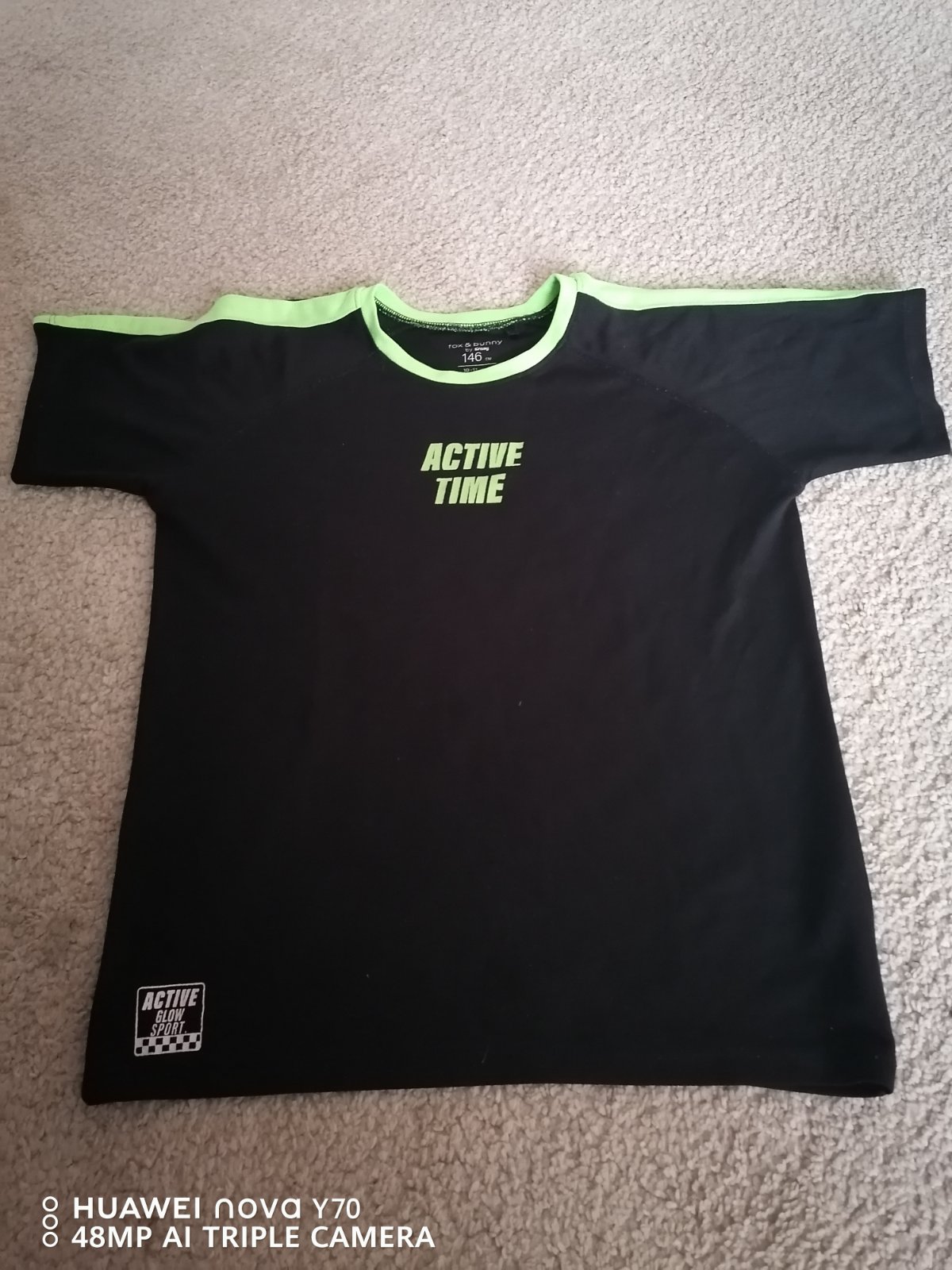 Tričká veľ. 146 s krátkym. rukávom, čierne funkčné, sivé s číslom je s dlhým rukávom.