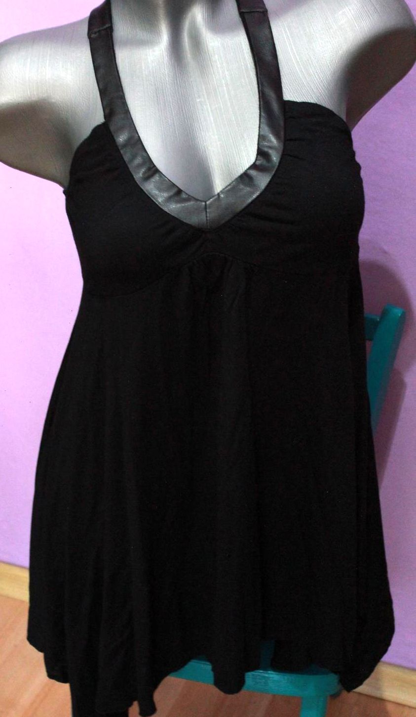 Cierna bluzka - tunika s ramienkami s kozenkovym zdobenim