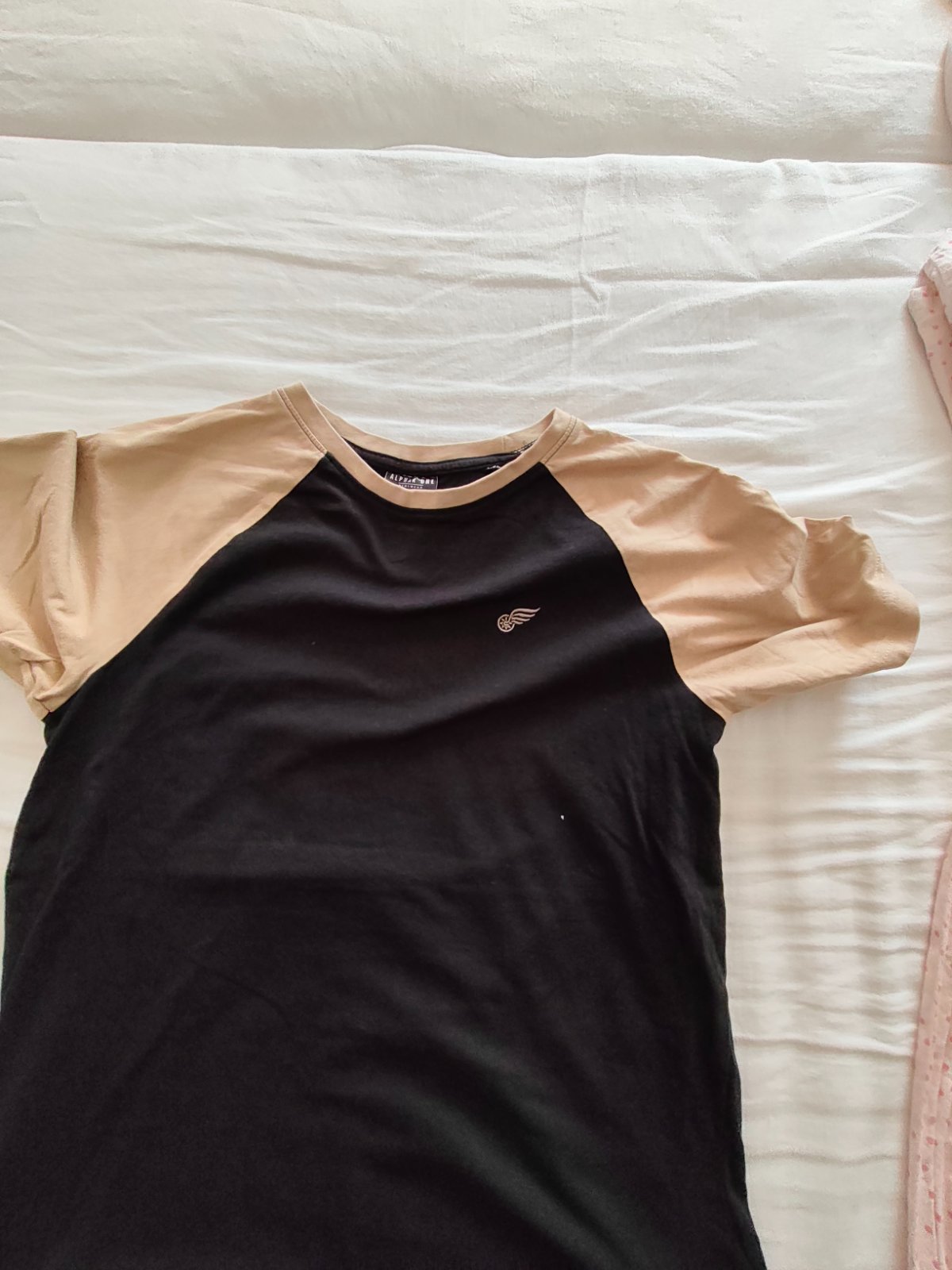 Predám lacno tričko s krátkym rukávom. Farby čierna a rukávy bledé. Veľkosť L. Zn. Alpar Oné.