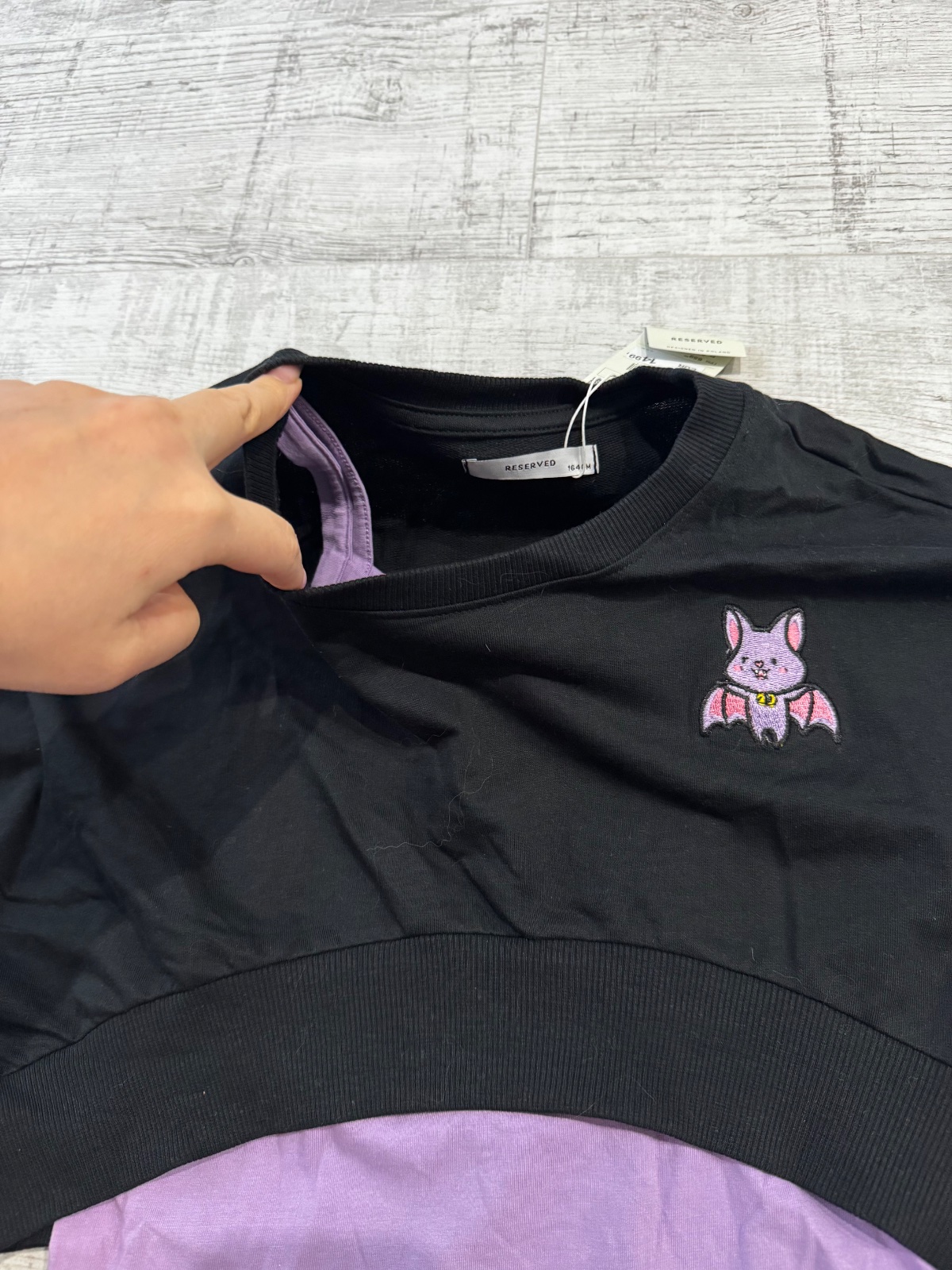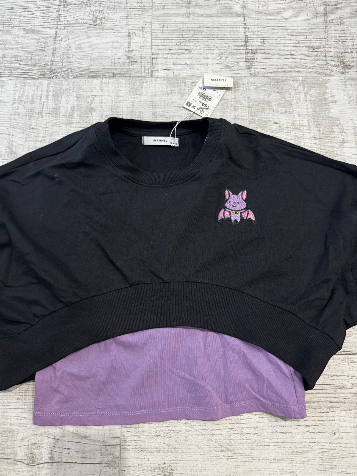 Reserved čierne tričko s kvetinovou aplikáciou, preklápacie flitre, myslím, ze sme ho ani nestihli vynosiť. Veľ. 164