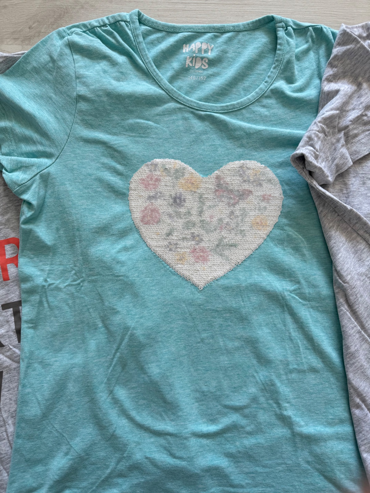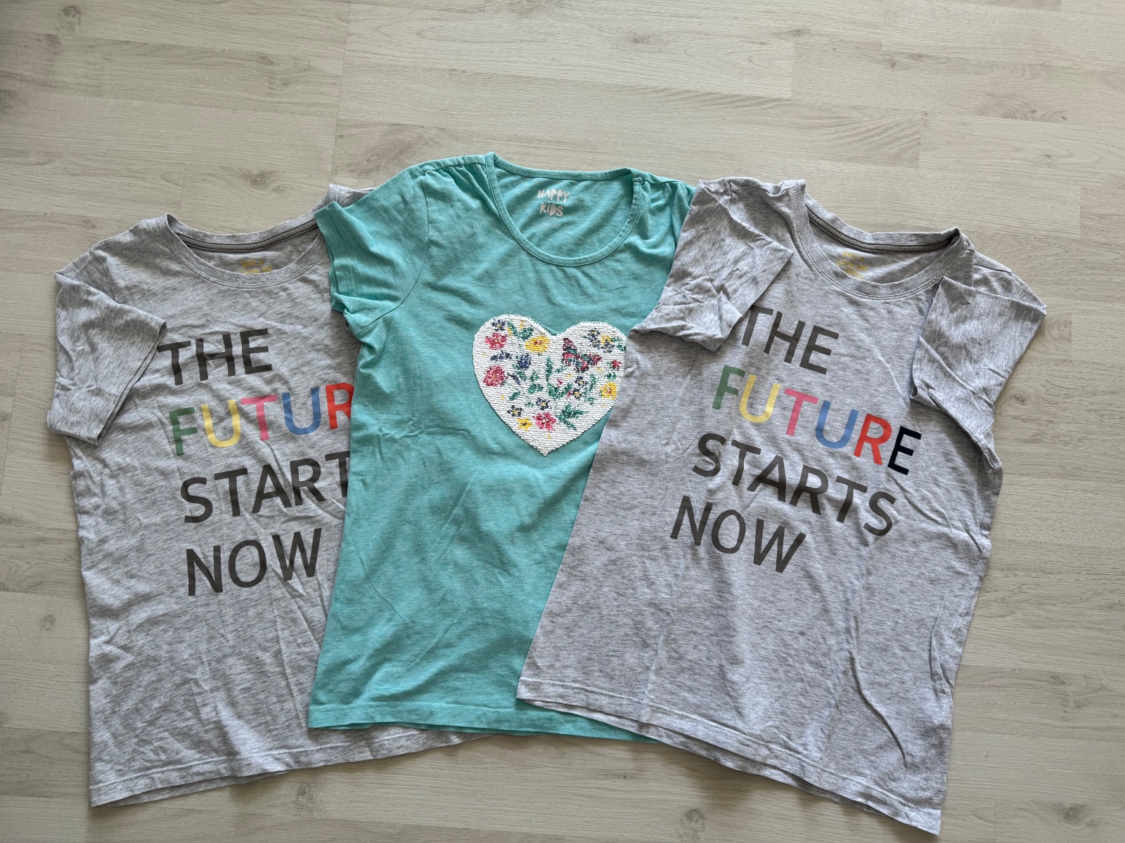 Predam 3 tricka s kratkym rukavom(iba spolu, nie po jednom). Tchibo, 2x svetlo sive, zelene je s obojstrannymi flitrami. Top noseny stav. Sive nosila dcera v lete na spanie.