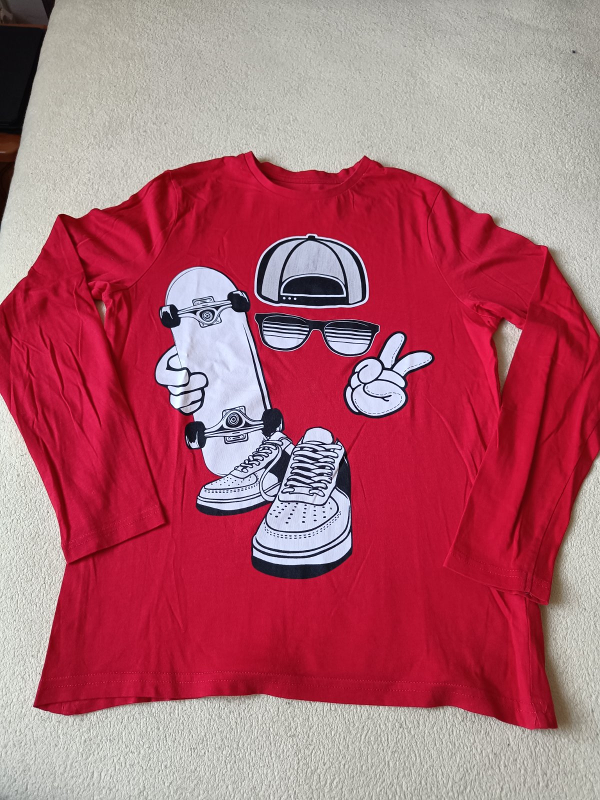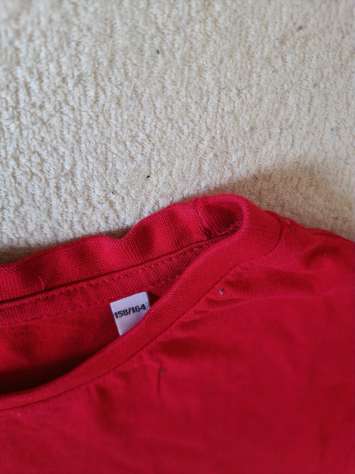 Predám tričko veľkosť 158/164, dĺžka 63 cm, šírka pod pazuchami 45 cm. Zloženie : 100% bavlna. Nepoškodené, nežmolkové. Cena 2,50 € + poštovné resp. osobný odber