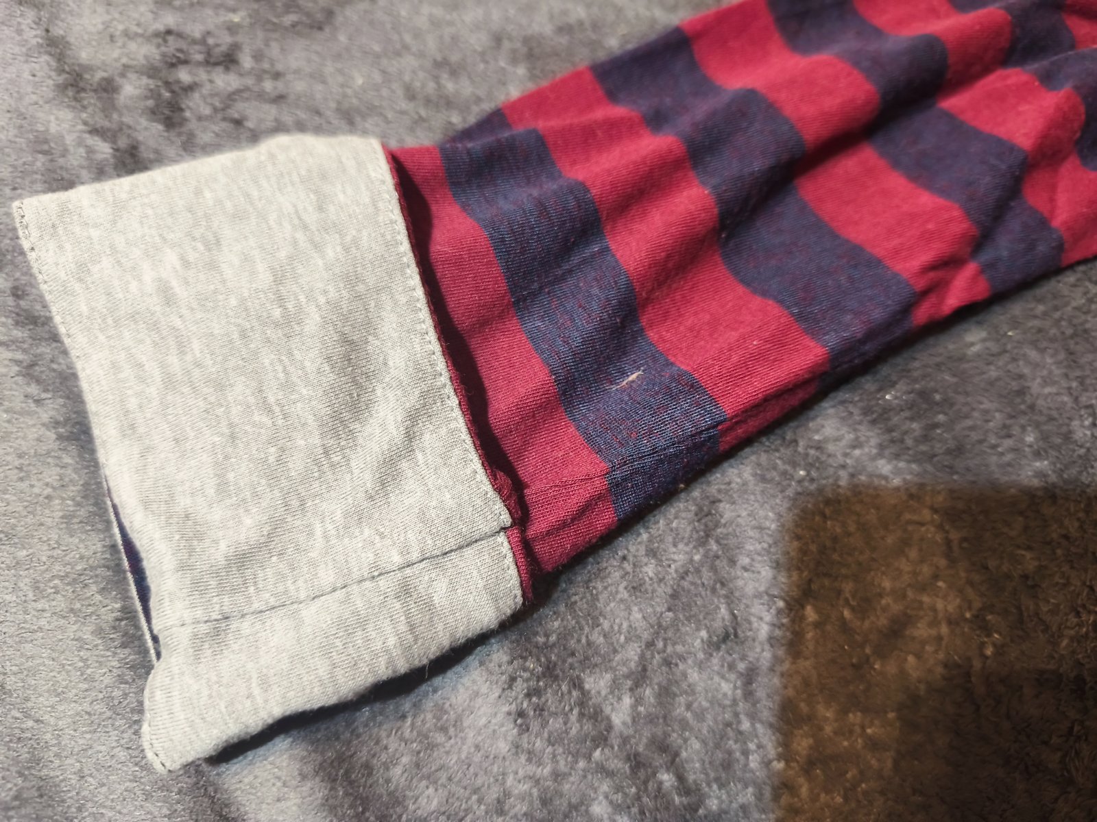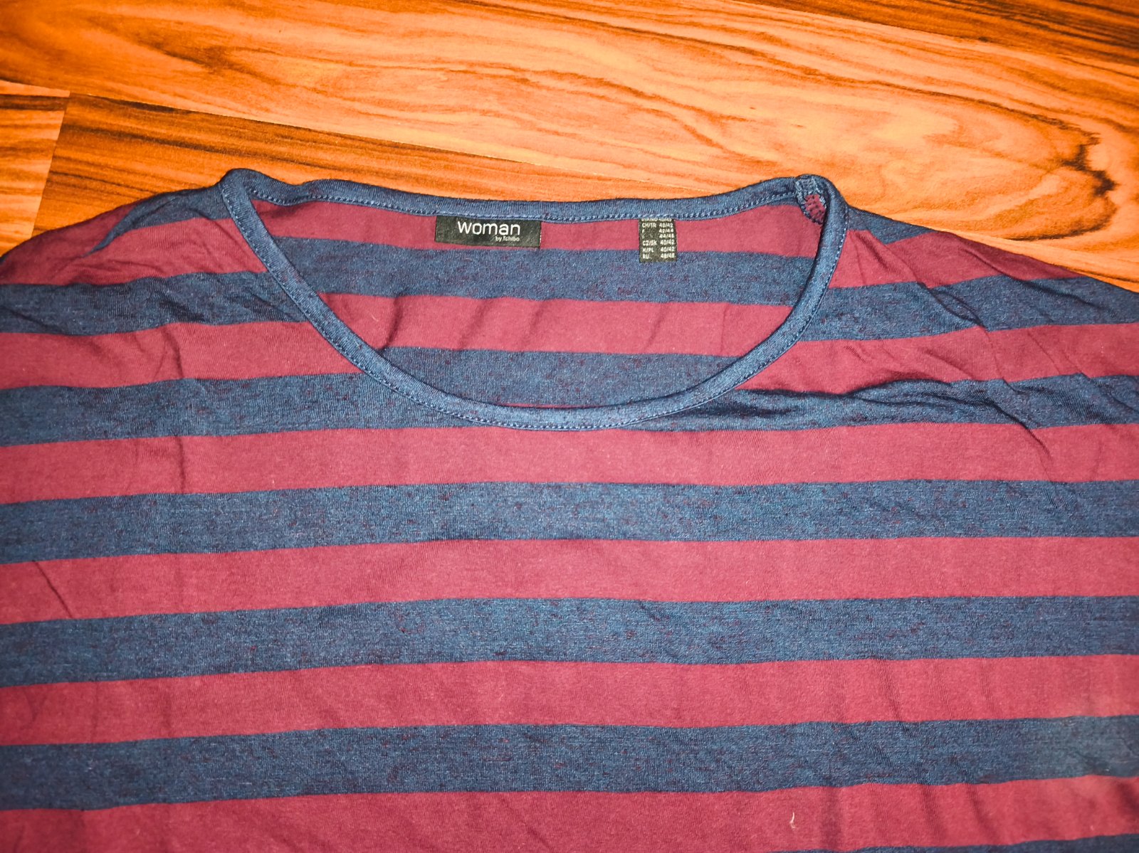 Nepoškodené, veľmi pekné tričko. Veľkosť je 40-42, dľžka je 62 cm, vzadu o 4 cm viacej. Rukáv má 54 cm, šírka pod pazuchami je 67 cm. Rukáv sa dá vyhnúť, je sivej farby. Veľmi pekný efekt