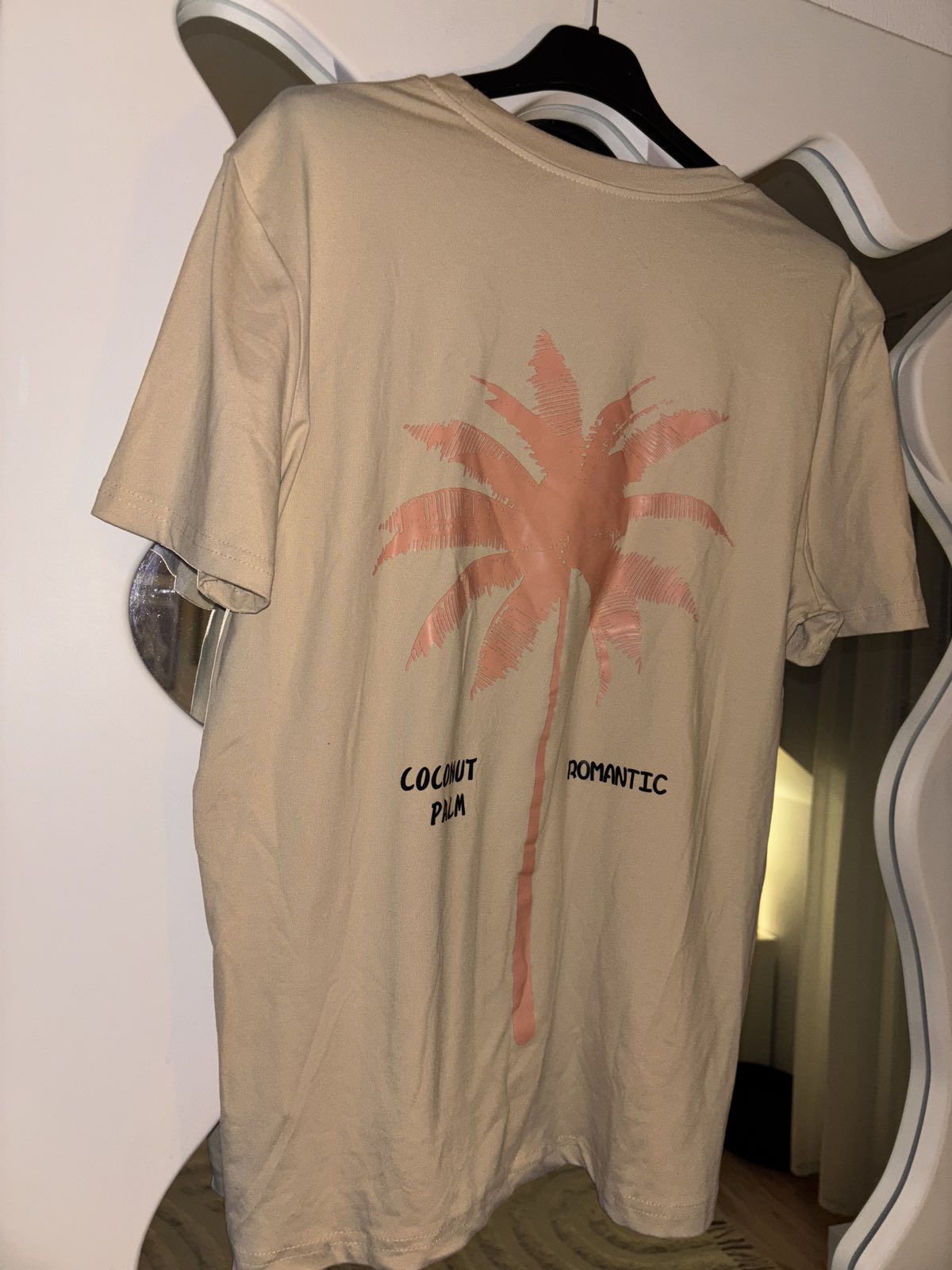 Nové, pružné,obsahuje 5 % elastanu, krémové, veľkosť M, s.pod pazuchami 52 cm, d. 67 cm