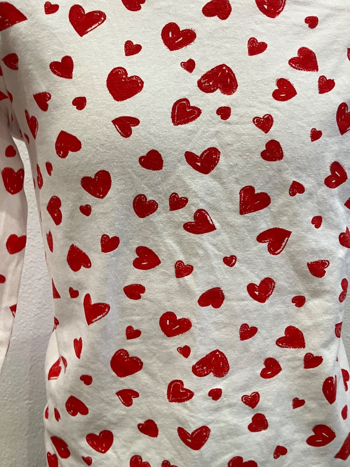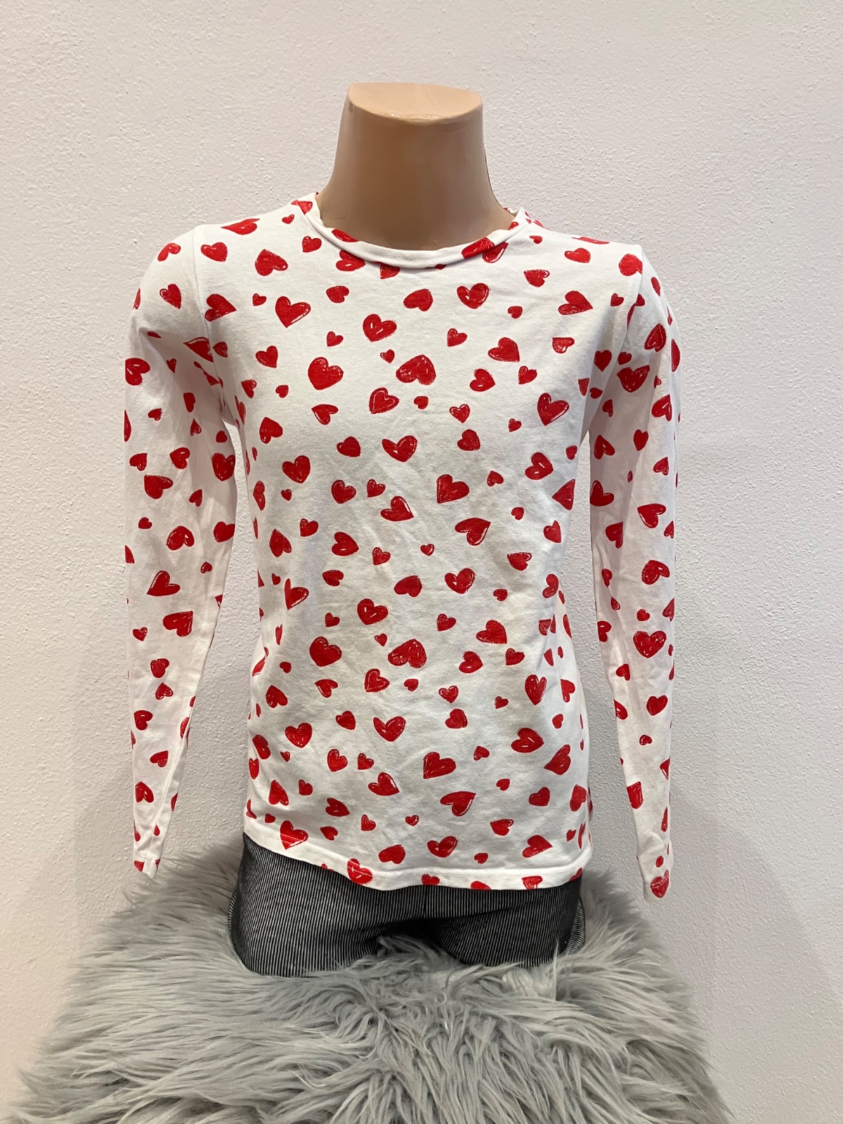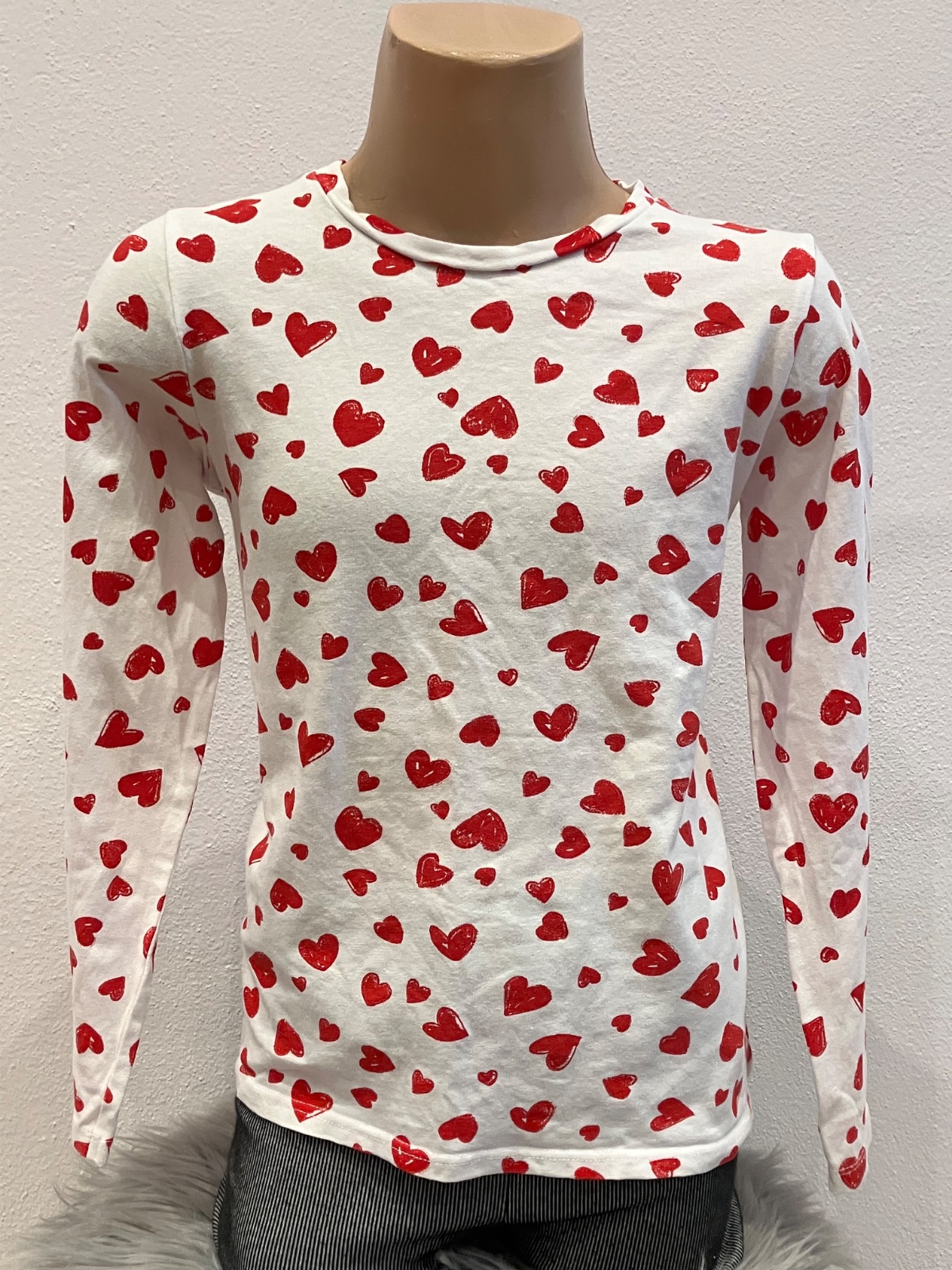 Dievčenské tričko s dlhým rukávom a so srdiečkami, okrúhly výstrih, elastické.