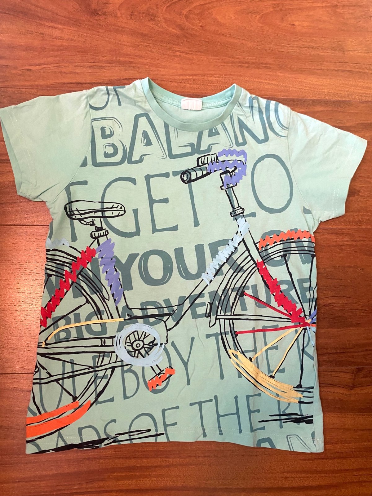 Letné tričko s bicyklom, veľ. na 9-10 rokov, 134-140 cm. Farba: bledozelená. Nové, len 2 krát oblečné.
