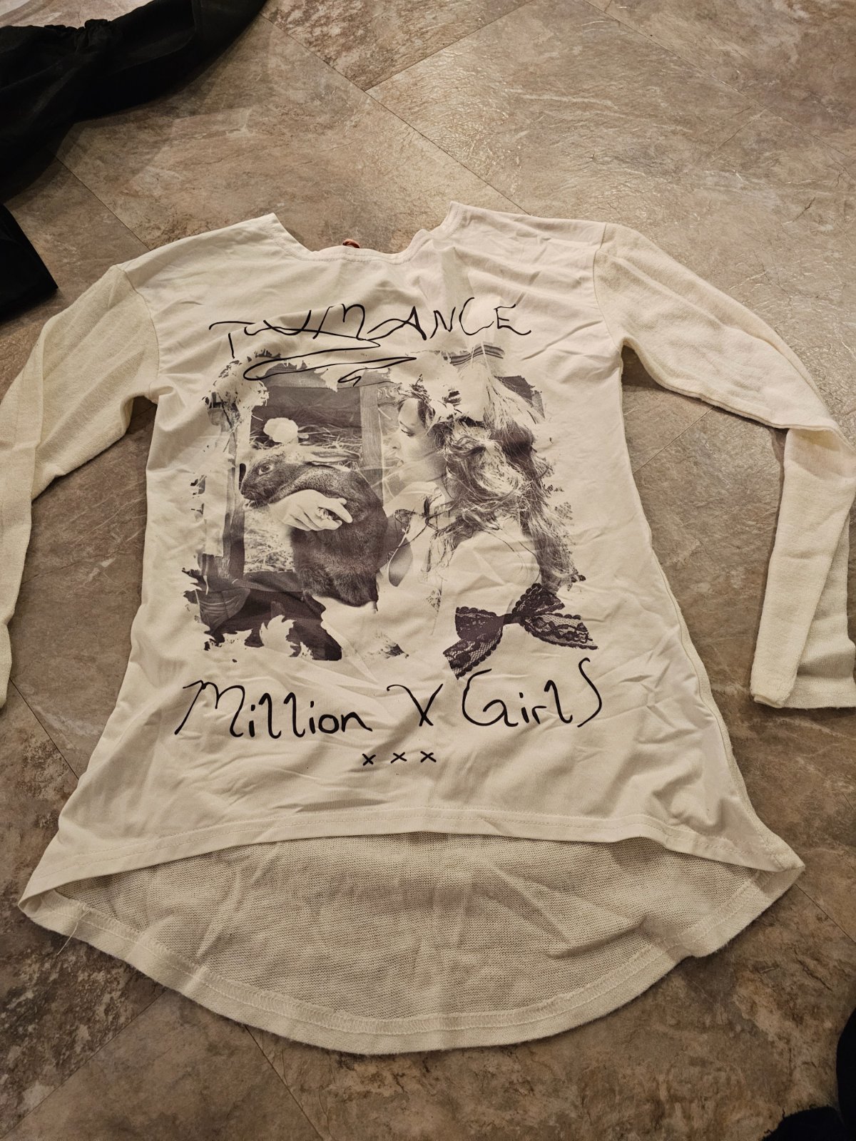Vpredu kratsie, vzadu dlhsie, material vpredu iny, na rukavoch a vzadu taky ako uplet. Tricko je komplet elasticke. Dlzka vpredu
