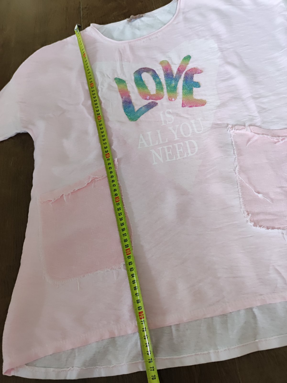 Svetloružové tričko s bočnými rozparkami Rozmery: Šírka: 49 cm Dĺžka celková: 69 cm