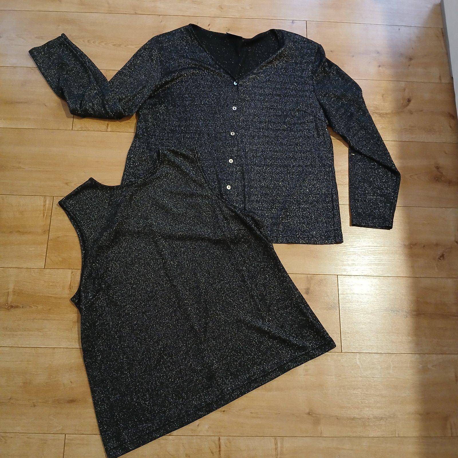 Čierno- strieborné elegantné elastické tielko spolu s kardigánom na gombiky