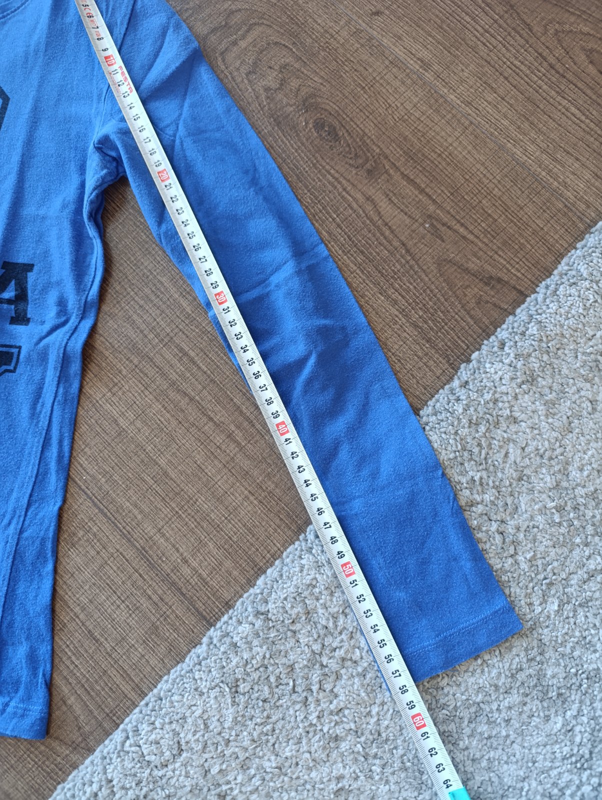 Nosené, tri štvrtiny rukáv, veľkosť 146/152, dole malé dierky viď foto