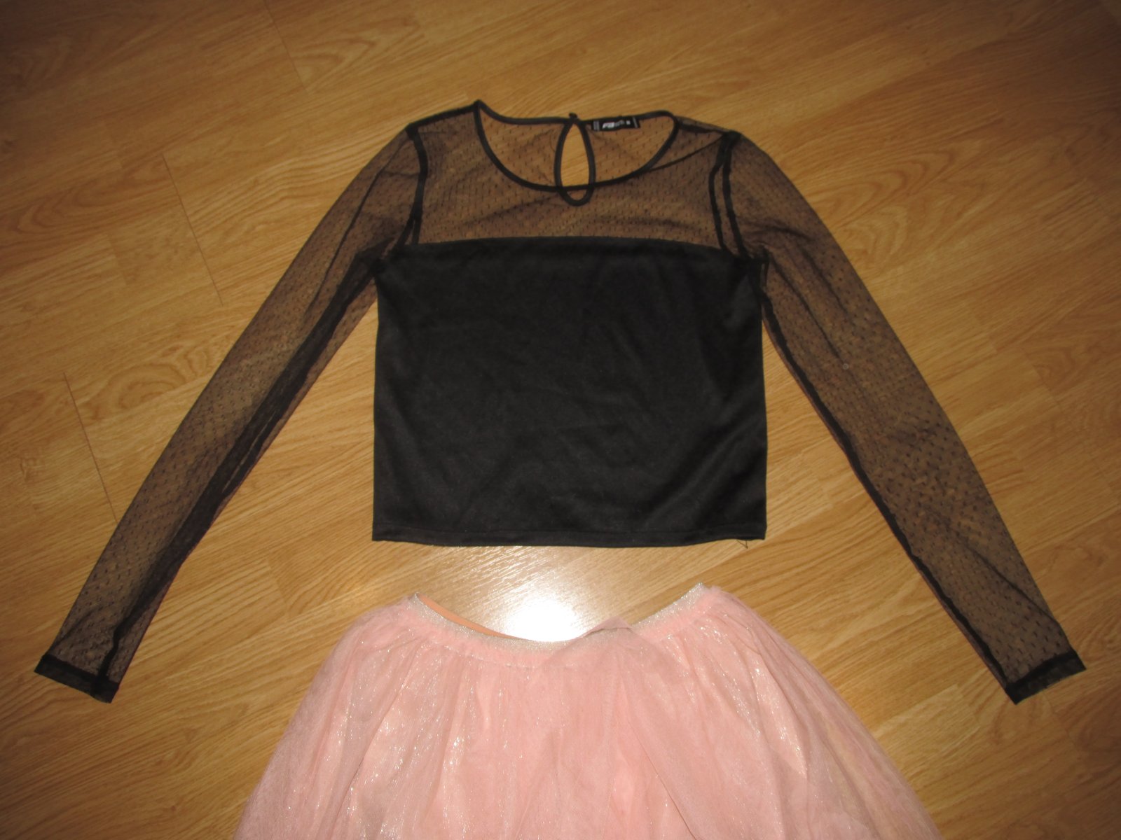 Ako nové tričko s transparentnými rukávmi a ramenami, v zadu na gombík. Ostatná časť nepresvitá.