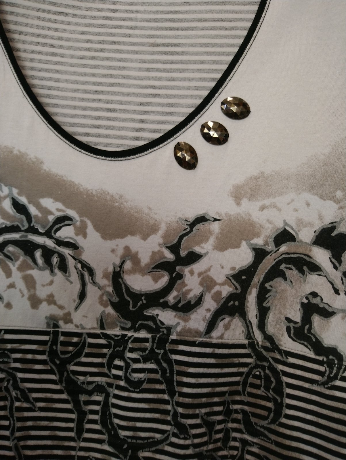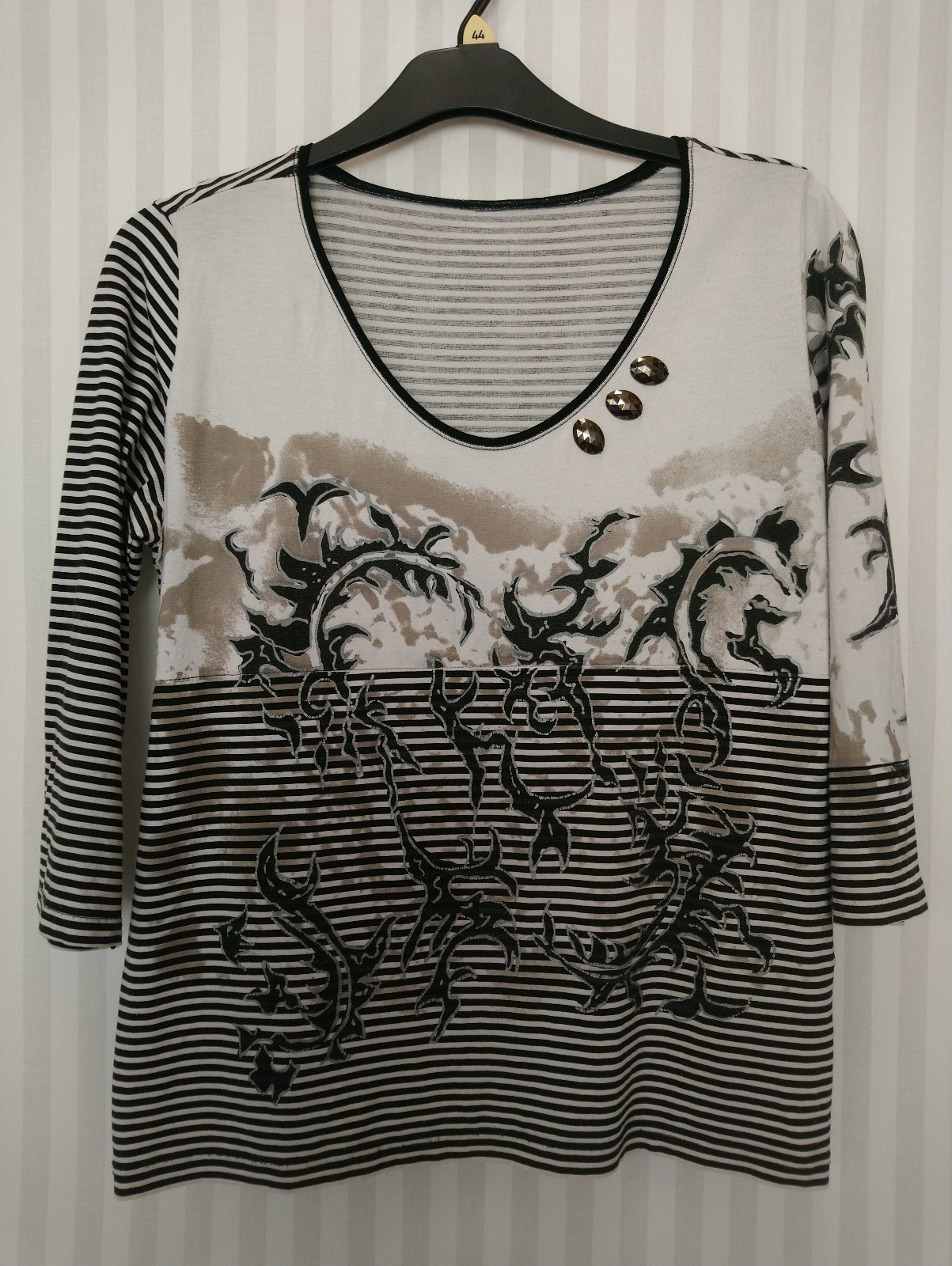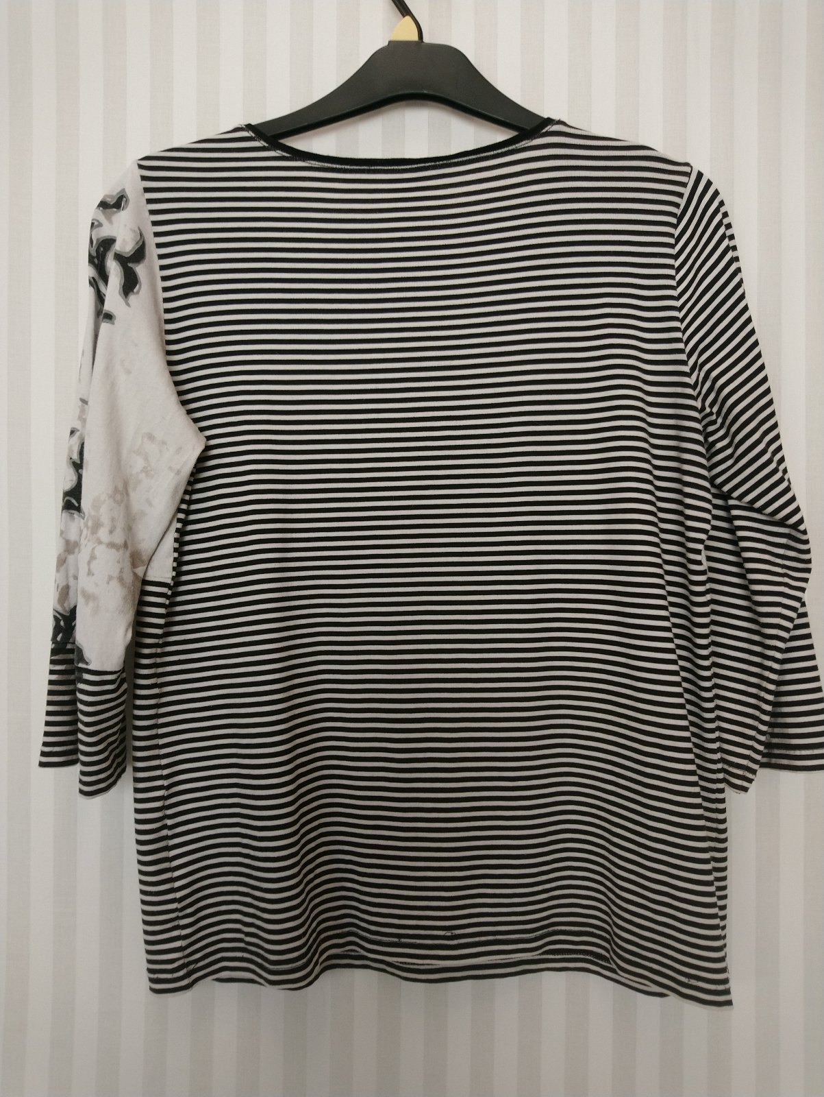 dámsky elastický pásikavý čierno biely top s farebným vzorom, 3/4 rukáv,