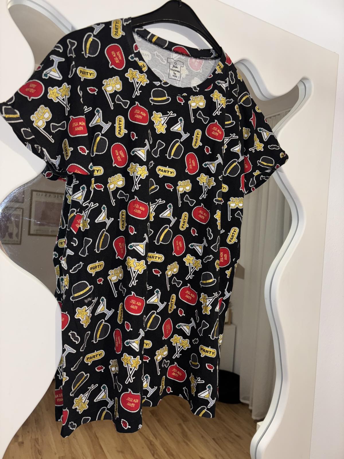 Výborný stav, trblietavé ikonky, veľkosť sedí na M/L,s.52 cm,d.66 cm
