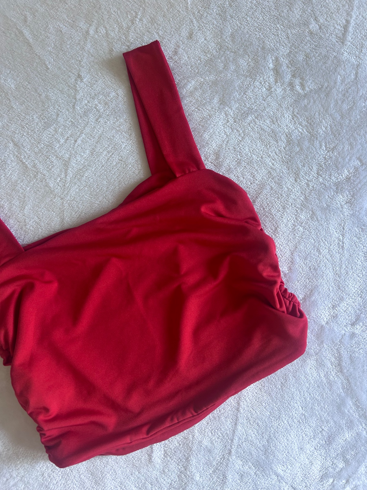 krasny a velmi kvalitny cerveny crop top s jemnymi ramienkami , velkost UNI sedi na XS/S